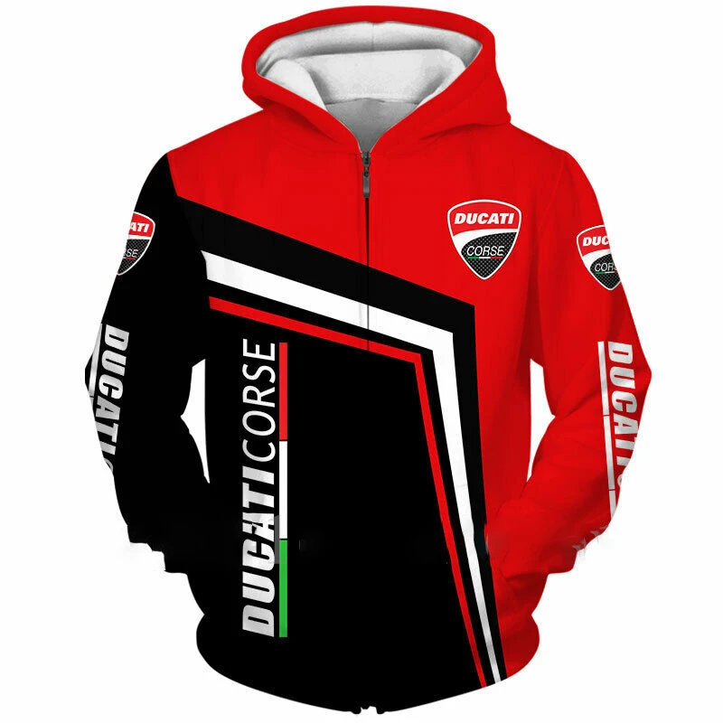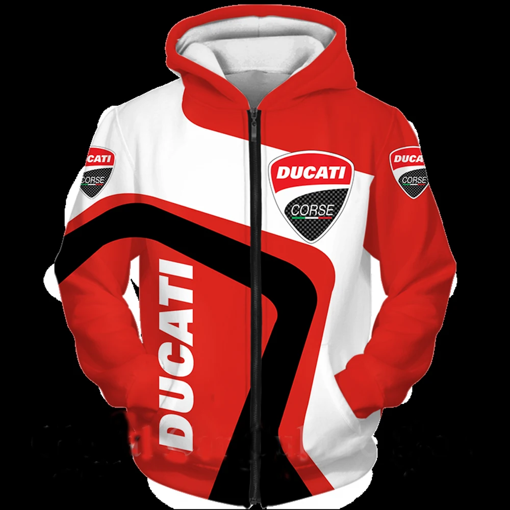 Толстовка Ducati С 3d логотипом, Мужская модная куртка на молнии для гонок, Женская толстовка, худи, детская одежда, мотоциклетный спортивный костюм, пальто на молнии