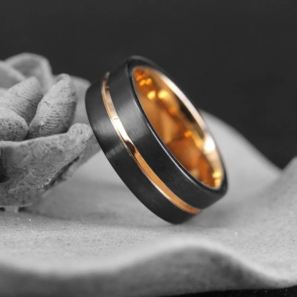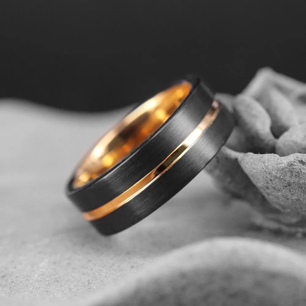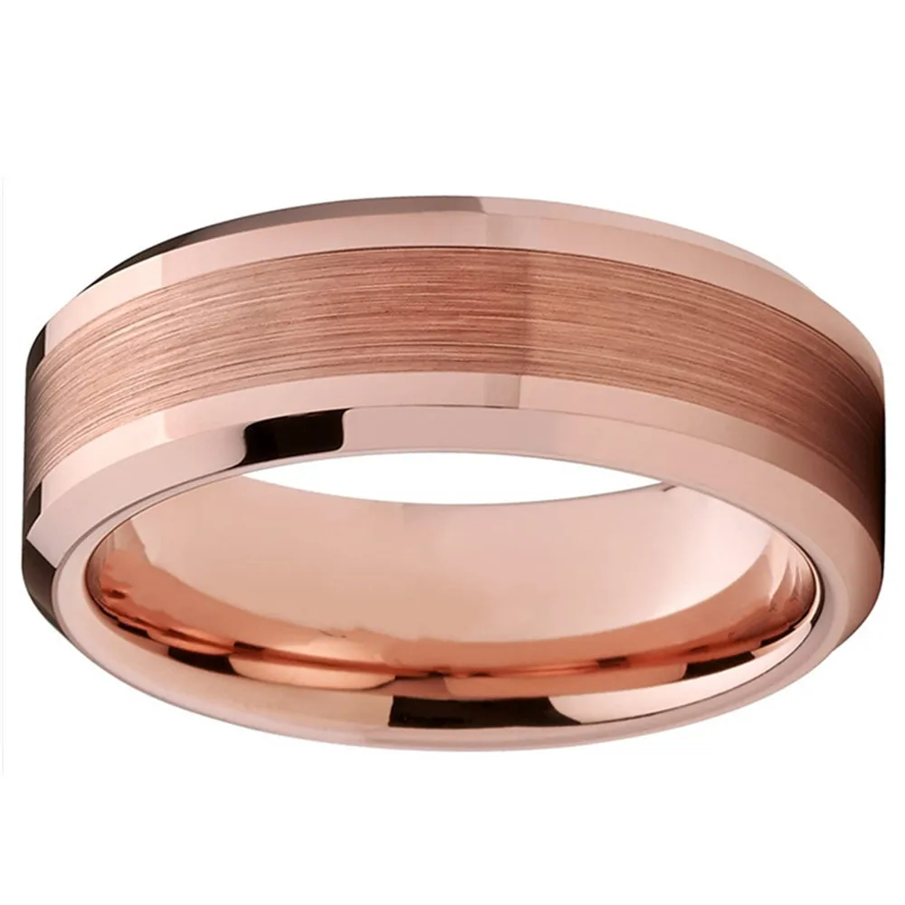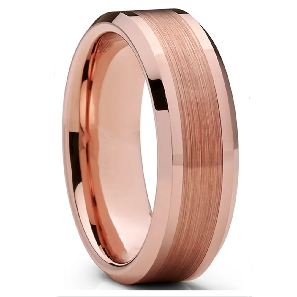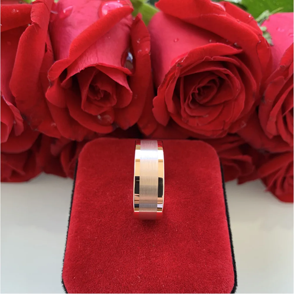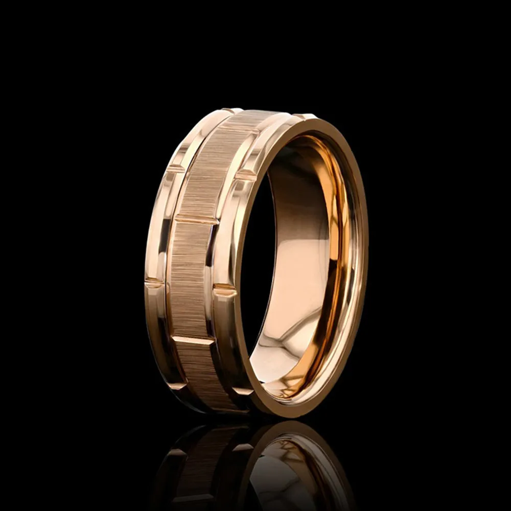 Модное серебряное кольцо из нержавеющей стали 8 мм с инкрустацией метеорита, обручальное кольцо для мужчин и женщин, розовое золото, двойные кольца с рисунком кирпича