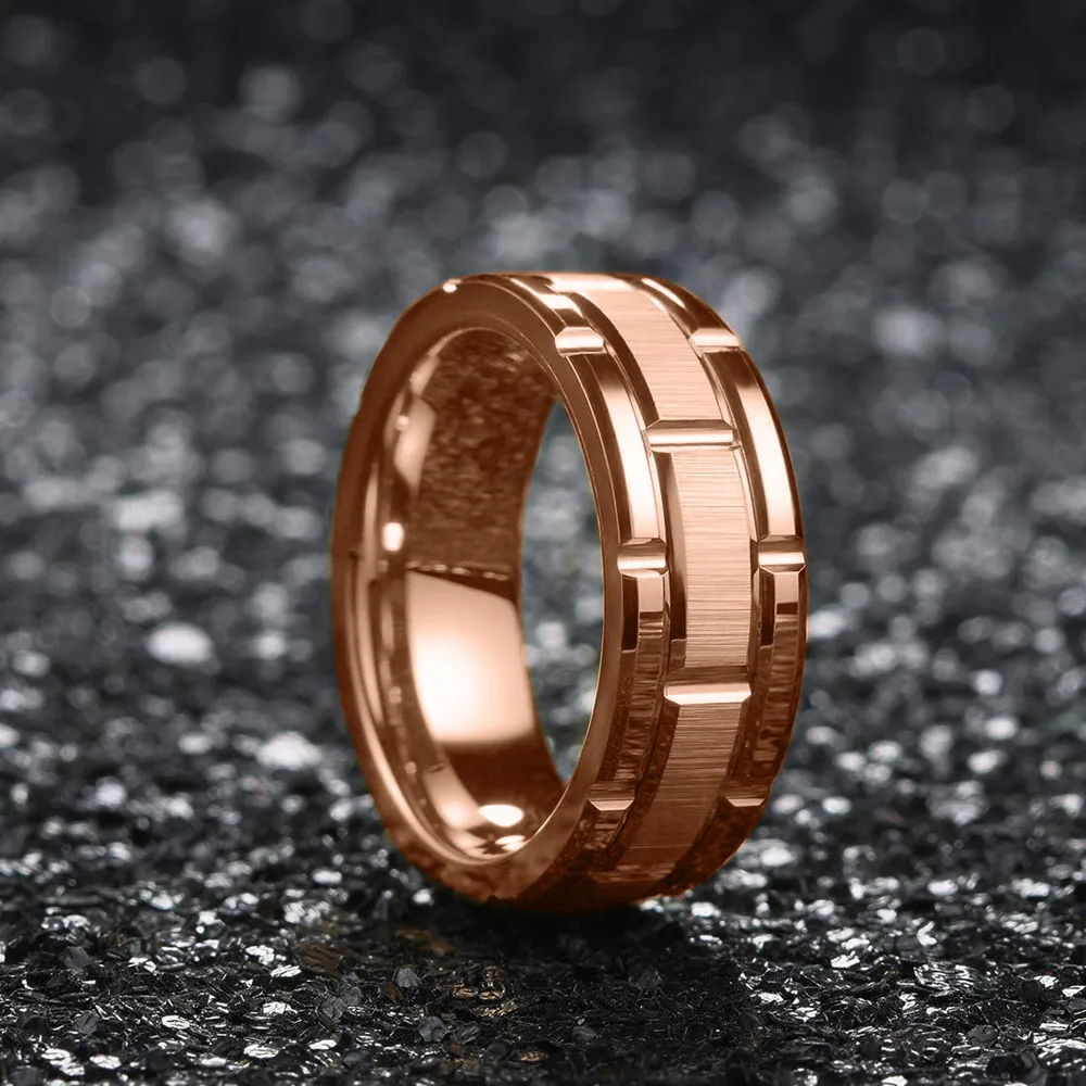 Rings Style 27Double Groove Brick Pattern Brushed Rings