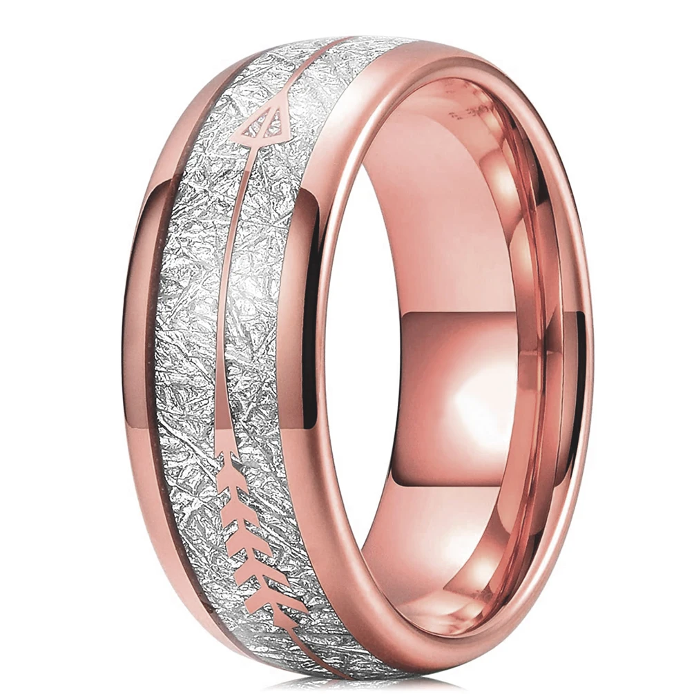Модное 8 мм Серебряное кольцо с метеоритом, инкрустация стрелой, нержавеющая сталь, обручальное кольцо для мужчин и женщин, розовое золото, двойной паз, кирпичный узор, кольца