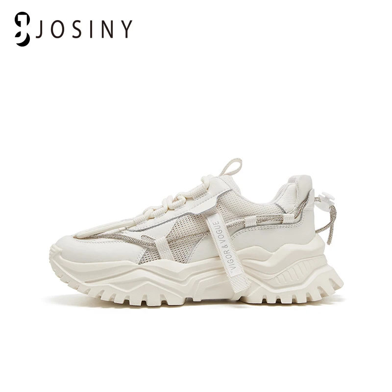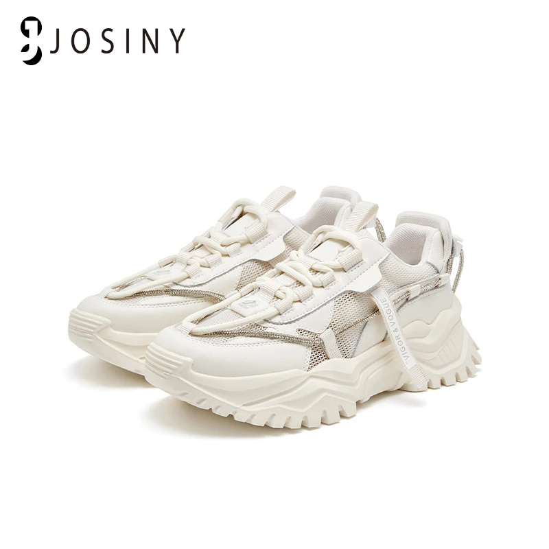 Кроссовки JOSINY Женские повседневные, ПУ кожа и ткань, на шнуровке, платформа, дышащие, плоская подошва, белые