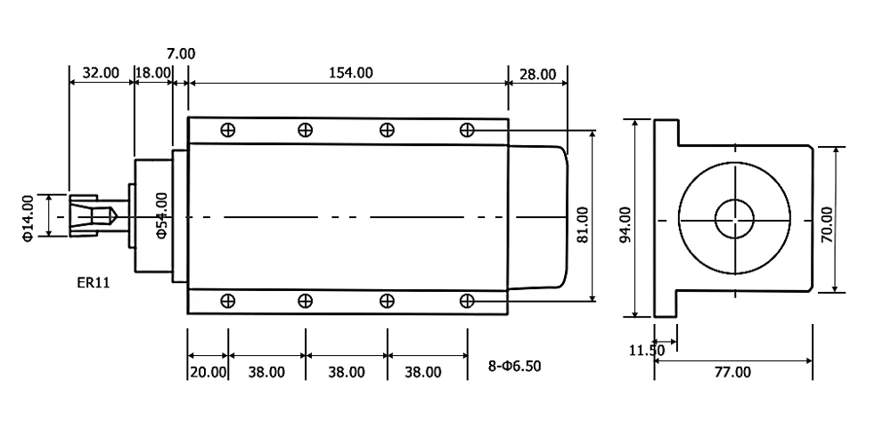 Новый квадратный шпиндель с воздушным охлаждением с ЧПУ 220 кВт 110 В1500 В ER11 Вт шпиндель с воздушным охлаждением для фрезерного станка с ЧПУ