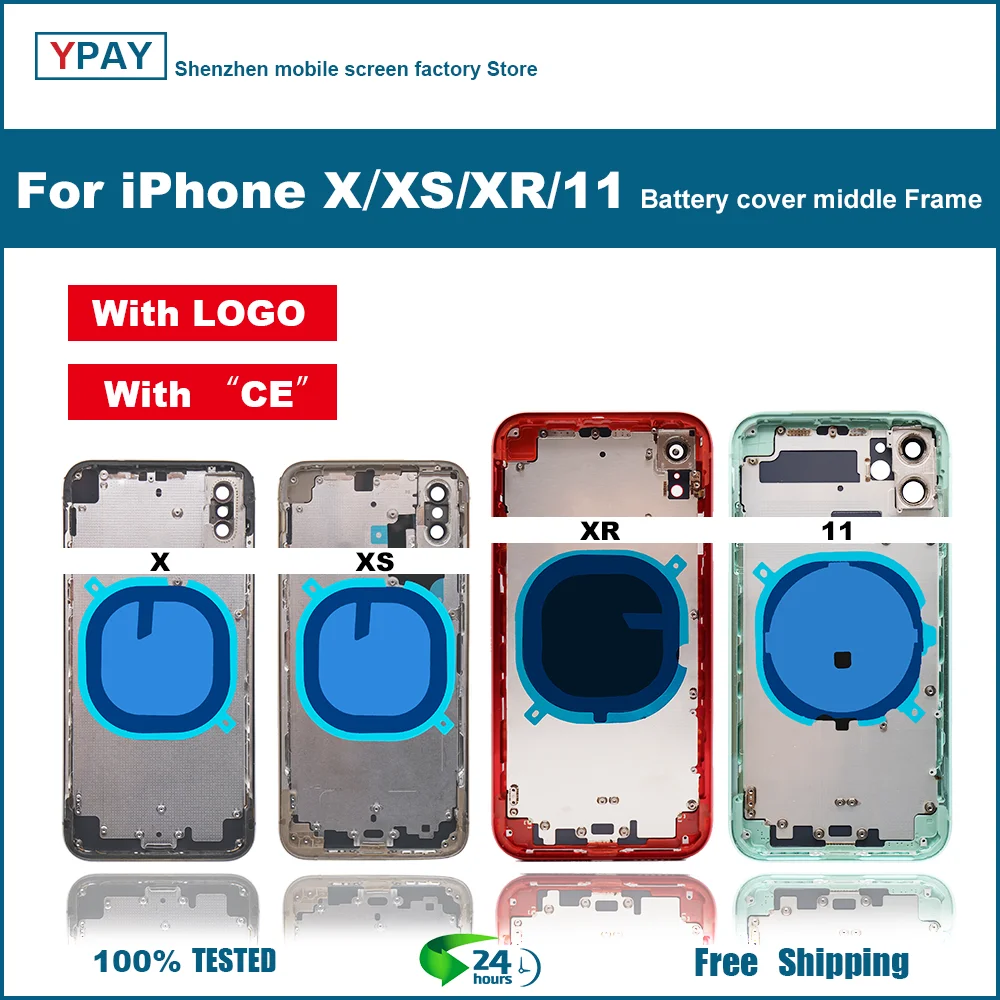 Задняя крышка аккумулятора для iPhone X XS XR 11 + средняя рамка Шасси + лоток для SIM-карты + боковые ключи Задний Корпус в сборе