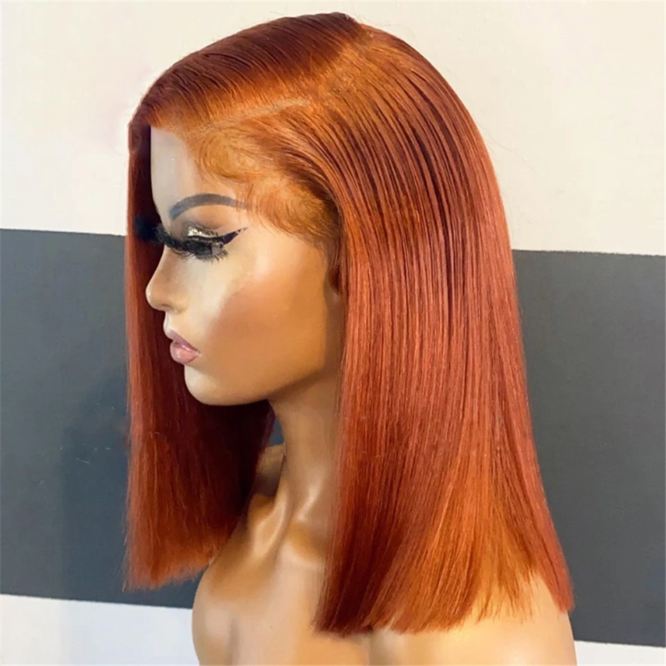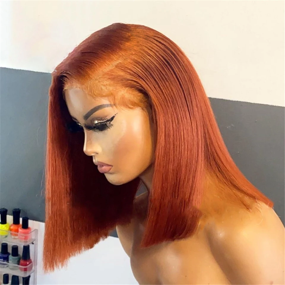 Парик Orange Short BOB, прямые парики на сетке спереди, предварительно выщипанные волосы Remy, Омбре, Имбирные кружевные фронтальные парики для женщин, прямой парик Боб