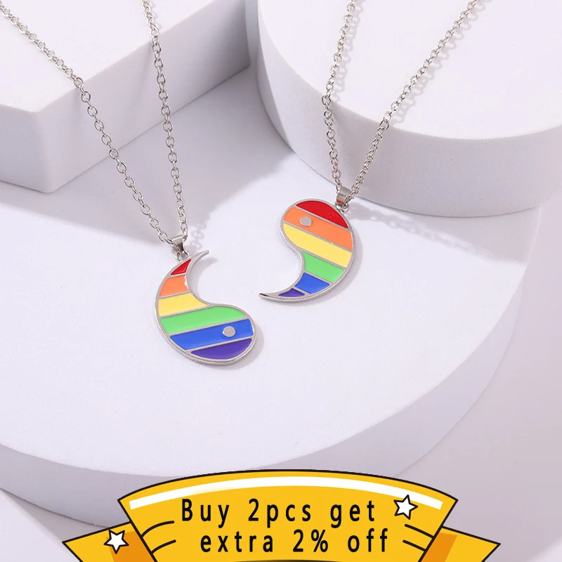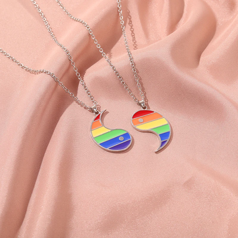 2 шт.компл. Радужная любовь кулон подарки для лучших друзей влюбленных ожерелье в форме ЛГБТ Багуа головоломка ожерелье Ювелирные изделия Подарки оптовая продажа