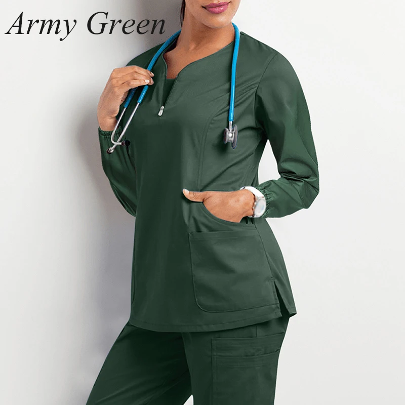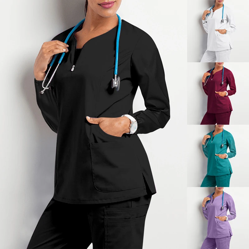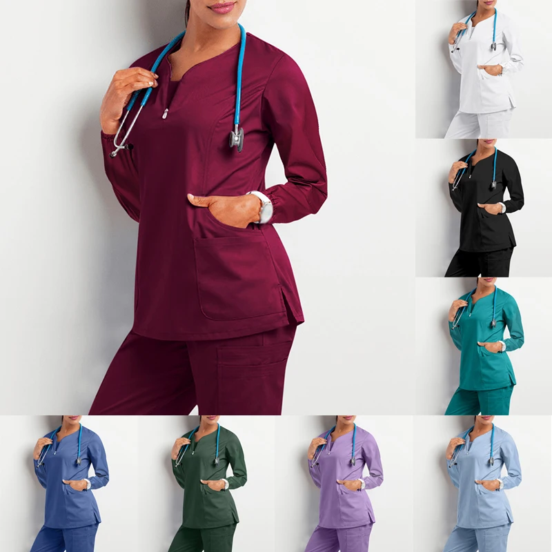 Форма медсестры, топы с длинным рукавом, высокое качество, унисекс, с V-образным вырезом, рабочая одежда, уход за домашними животными, уход за домашними животными, аксессуары для салона красоты