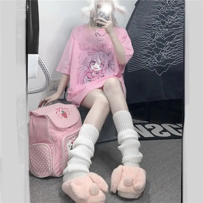 Милая девочка, милый мультяшный японский уличный студент, Харадзюку, розовый Забавный Повседневный Топ, Ulzzang, ретро свободная Летняя женская футболка