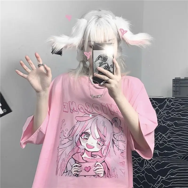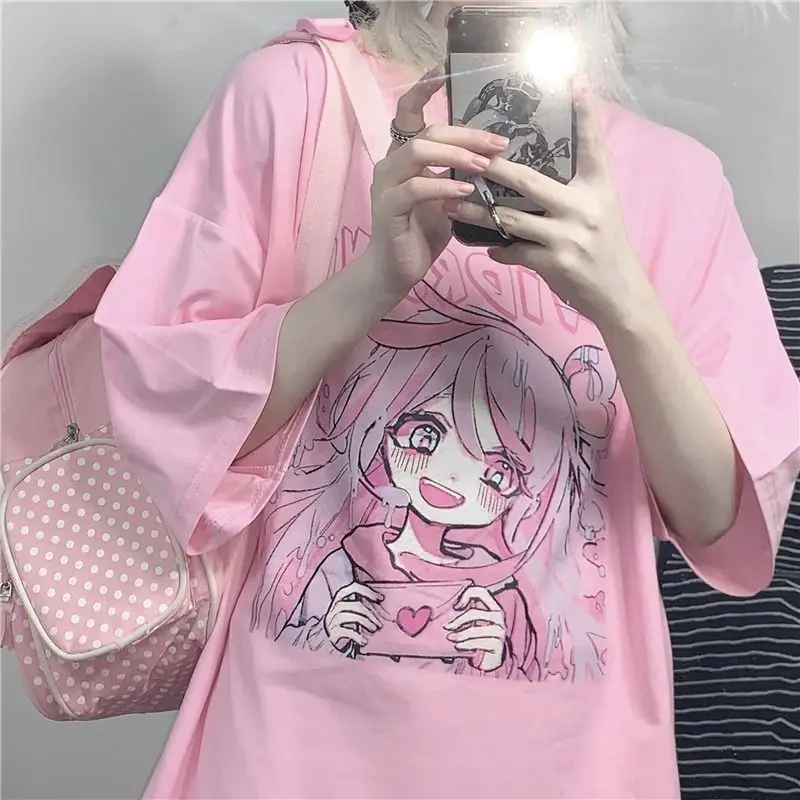 Футболка женская в стиле японского аниме, милая розовая одежда в ст...
