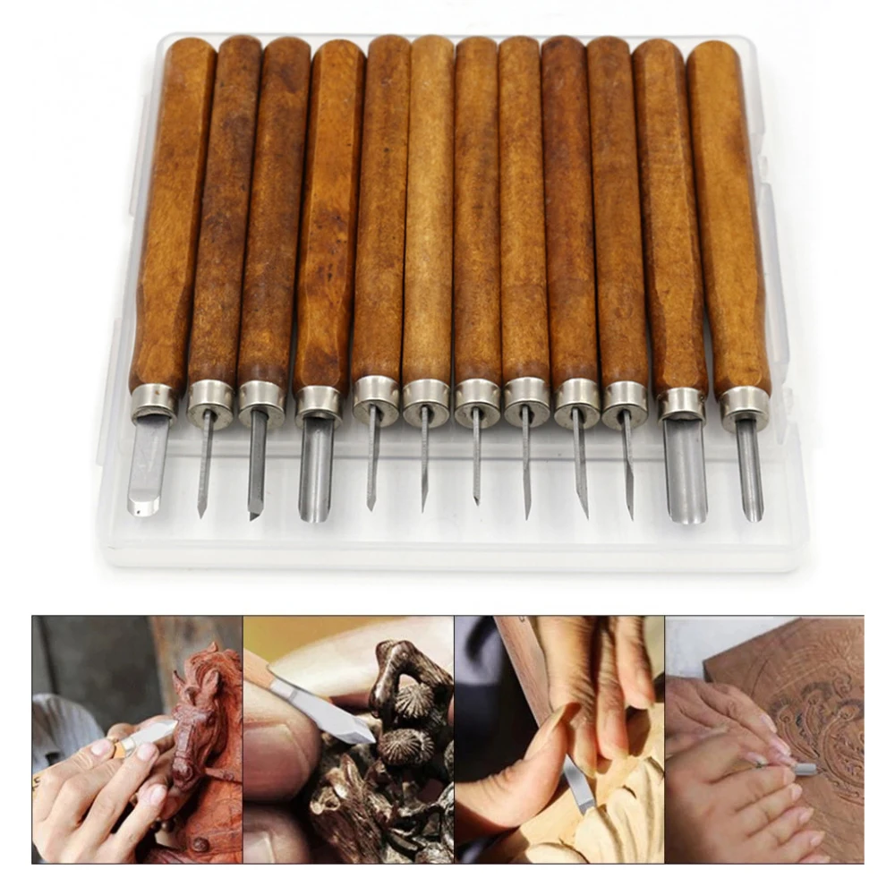Несколько вариантов: Набор долото для дерева поставляется с 12 видами инструментов, удовлетворяющих большинство требований, идеально подходит как для начинающих, так и для профессиональных мастеров.