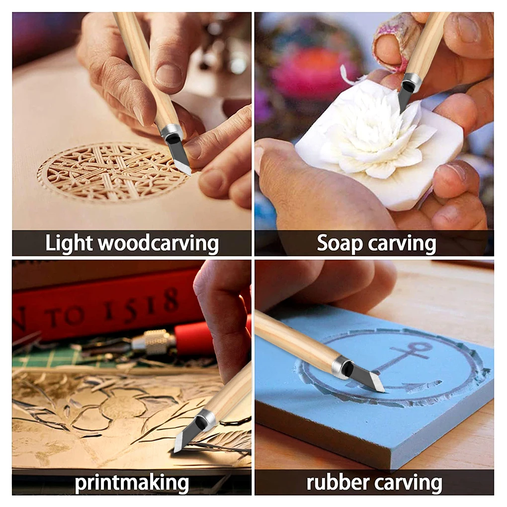 Эргономичный: набор гравировальных инструментов поставляется с деревянными ручками, обеспечивая удобное сцепление, не легко скользить, удобно для работы.