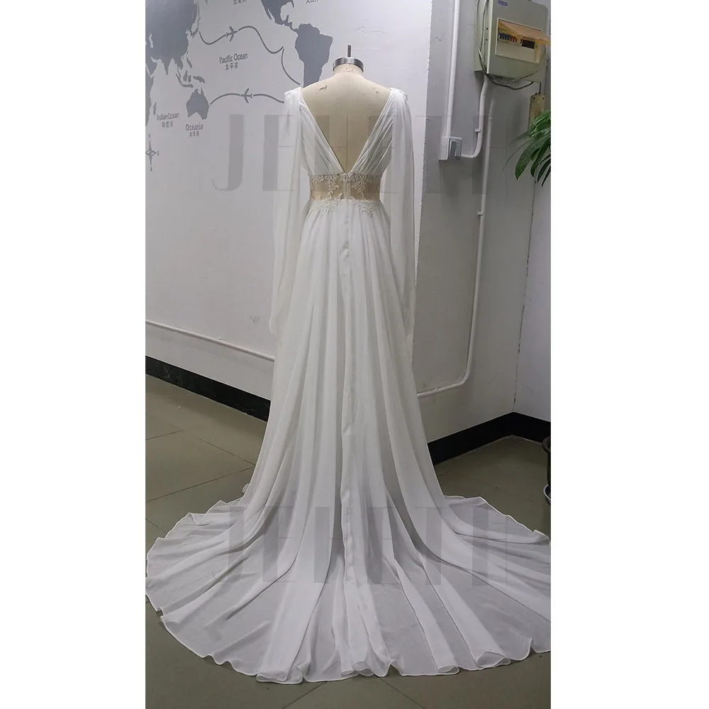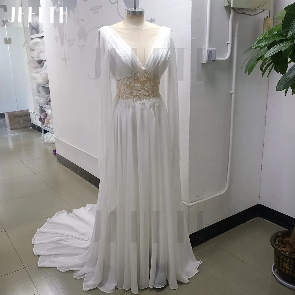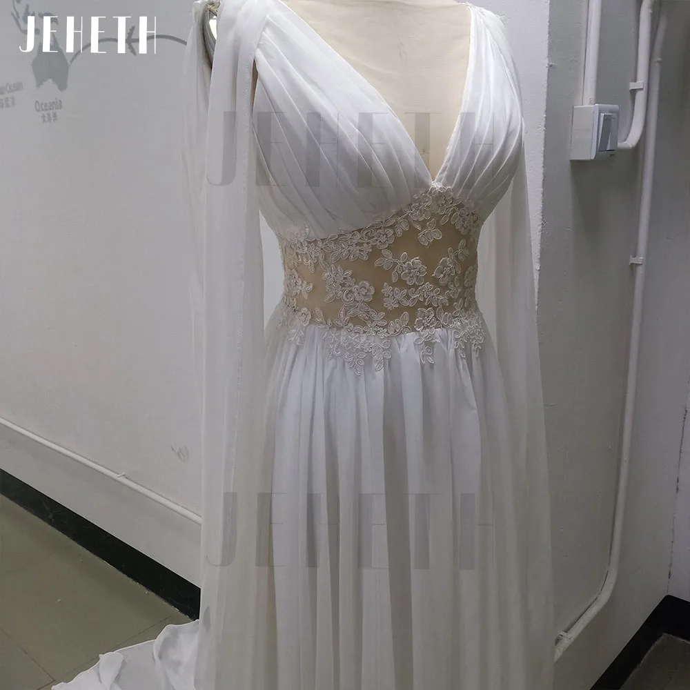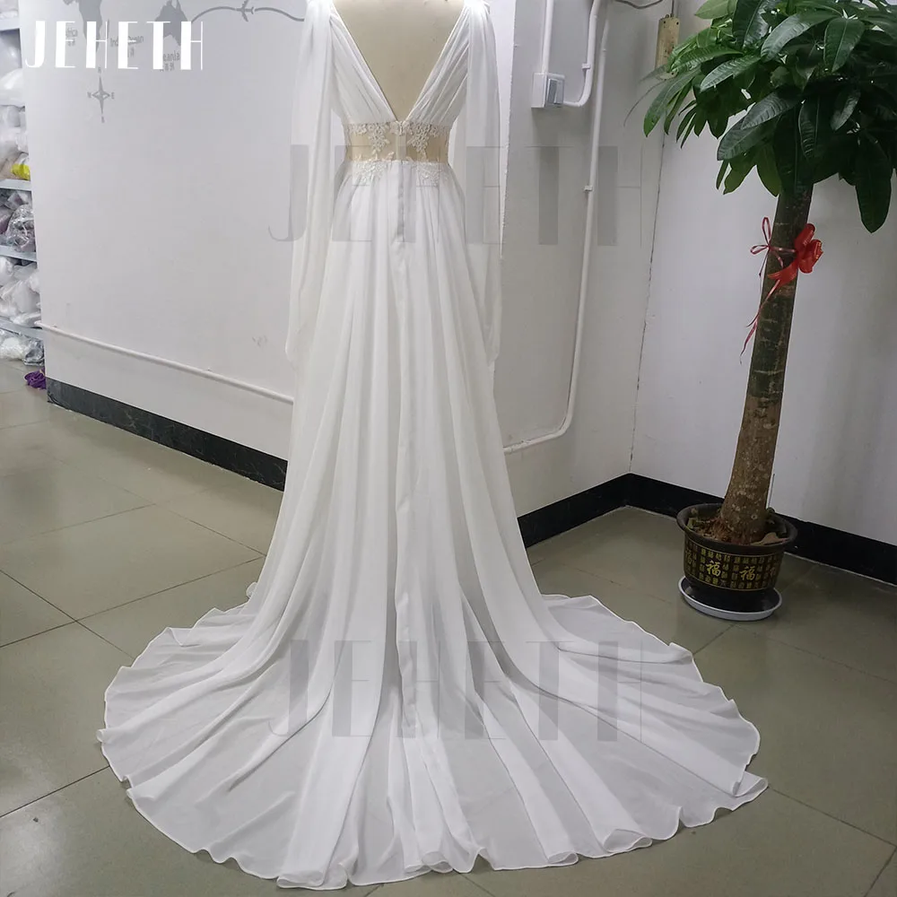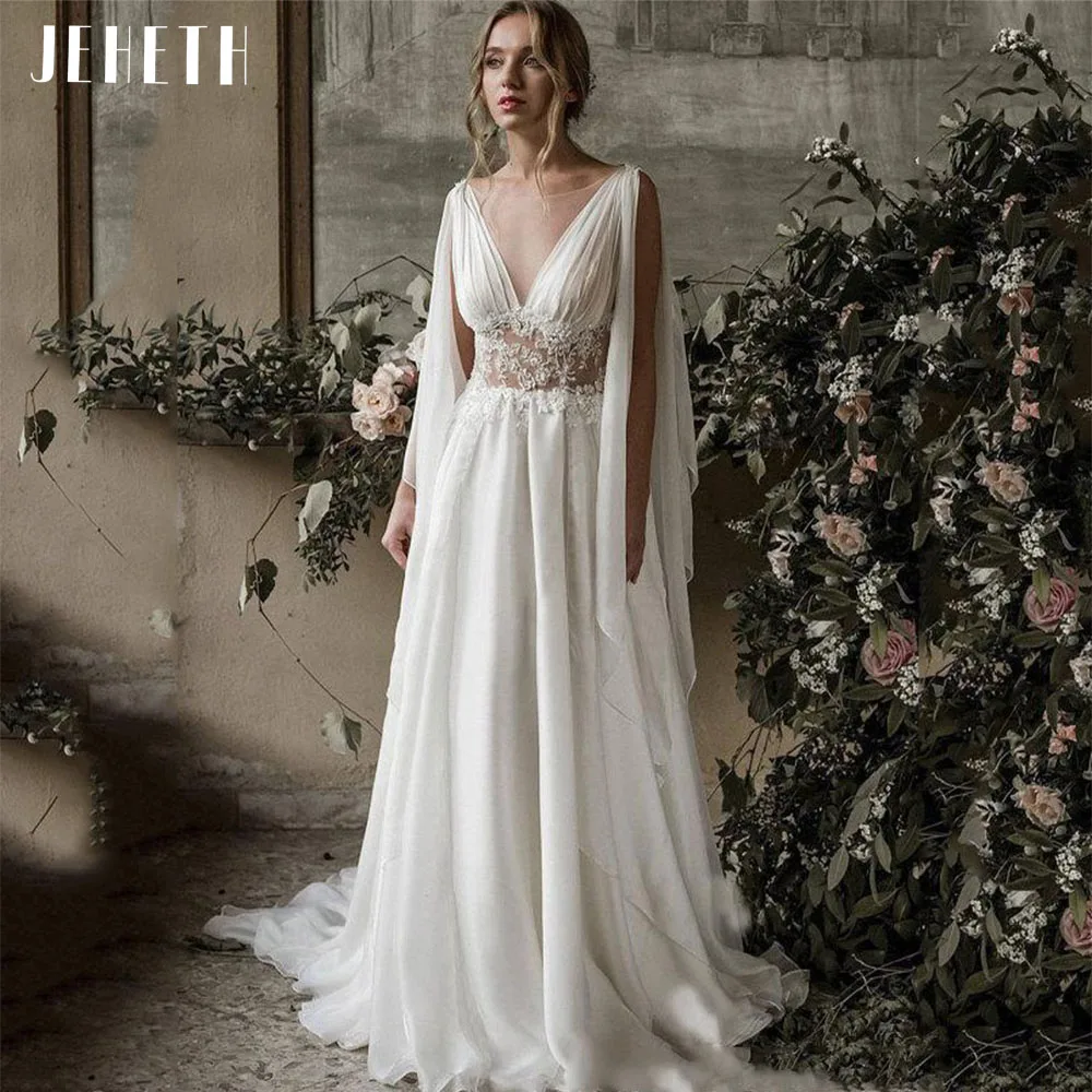 Винтажное шифоновое платье JEHETH в стиле бохо с аппликацией, шикарные пляжные свадебные платья с открытой спиной, а-силуэт, богемные свадебные наряды, платье невесты до пола 2022