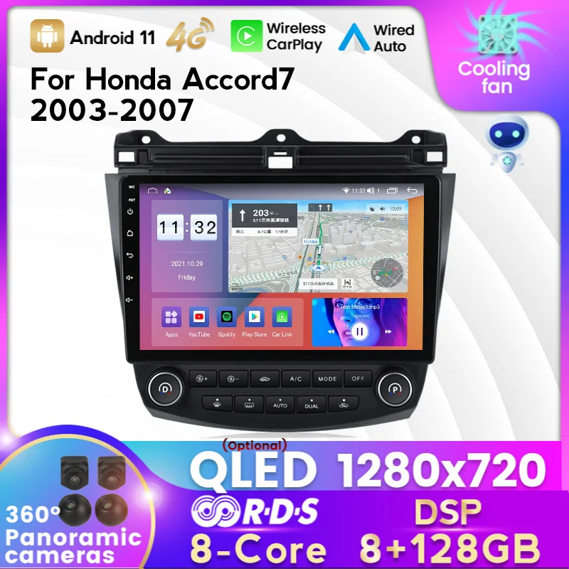Android 11 до 8ГБ + 128ГБ автомагнитола мультимедиа автомобиля головное устройство Автомобильная стереомагнитола на для Honda Accord 7 см UC CL 2003-2007, GPS, мультимедийный видеоплеер, 2 Din, RDS, DVD, CarPlay
