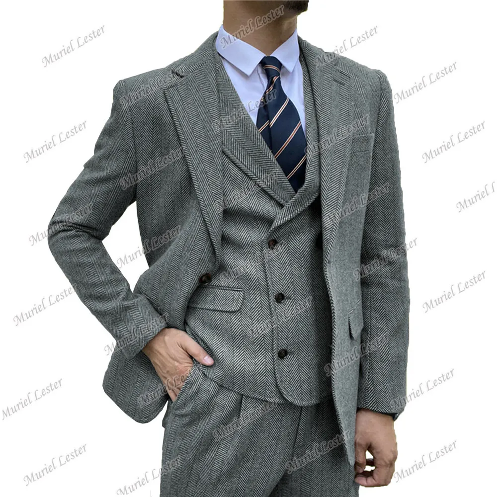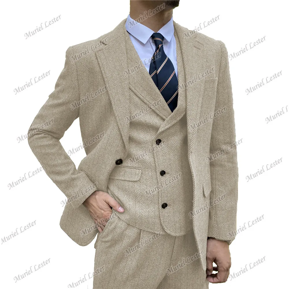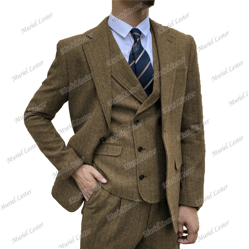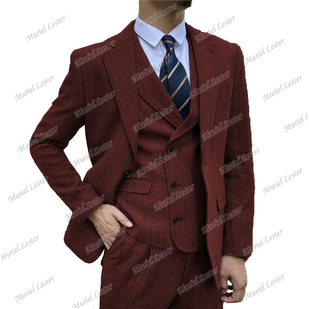 Мужские костюмы из твида в елочку, бордовые костюмы из 3 предметов, свадебные смокинги, индивидуальный Блейзер, приталенный костюм для жениха, шерстяное пальто 2022