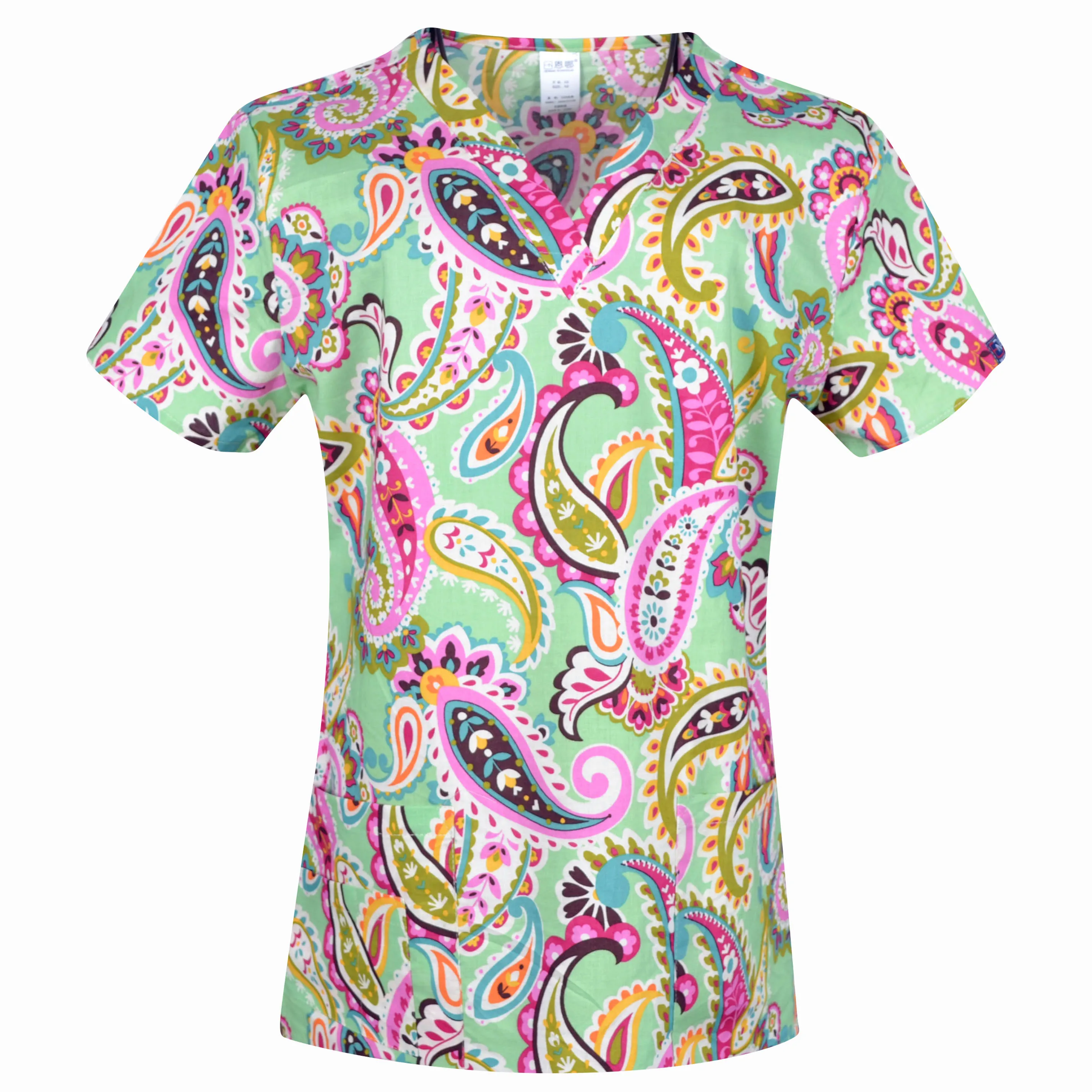 Женский скраб-топ с v-образным вырезом из 100% хлопка с принтом, ун...