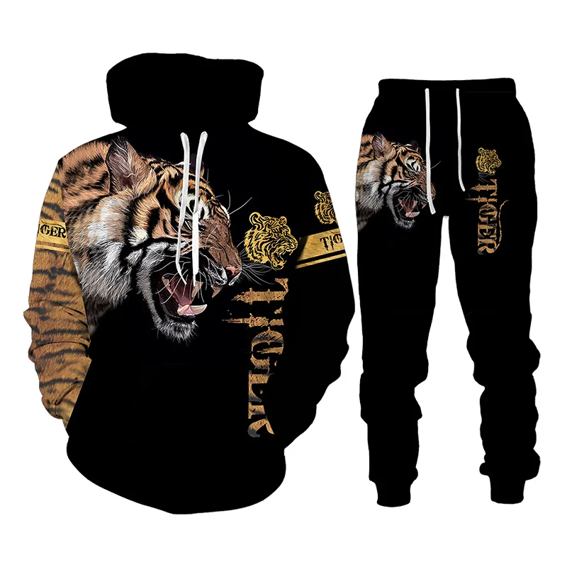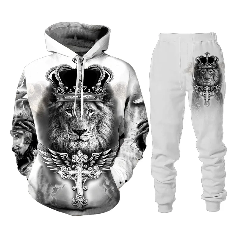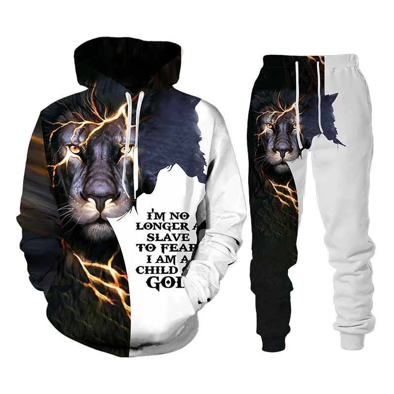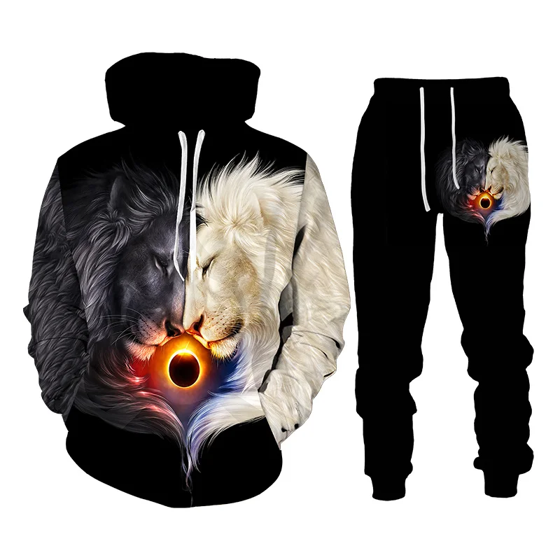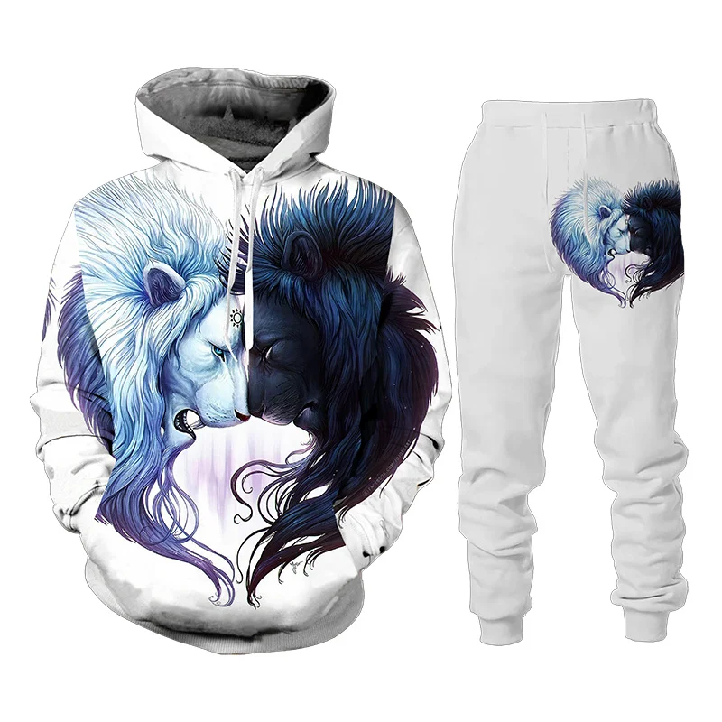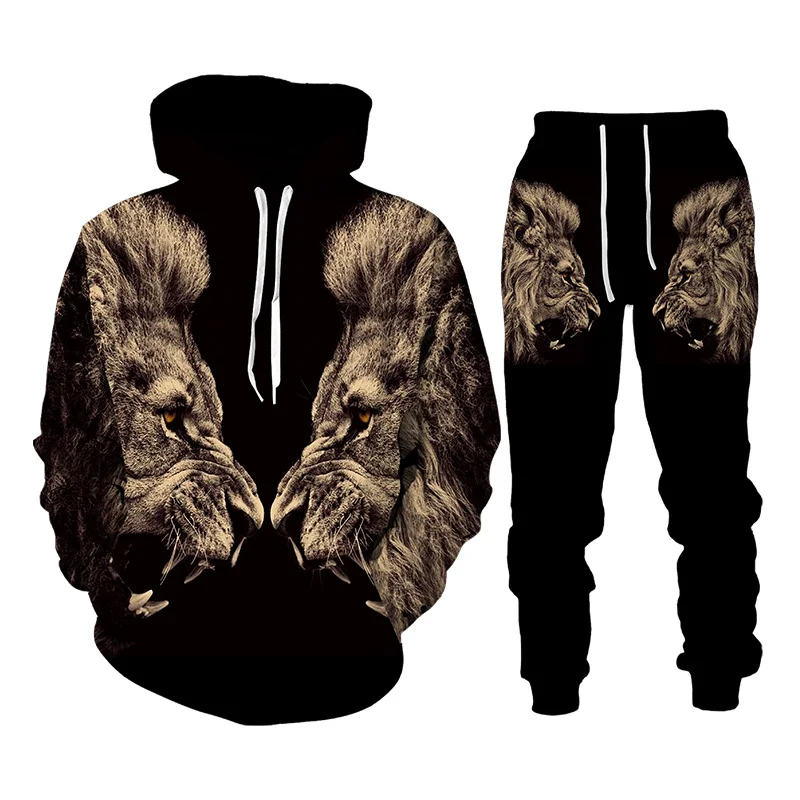 Костюм спортивный женский с 3D-принтом льва, Повседневный пуловер, свитшот, штаны, спортивная одежда