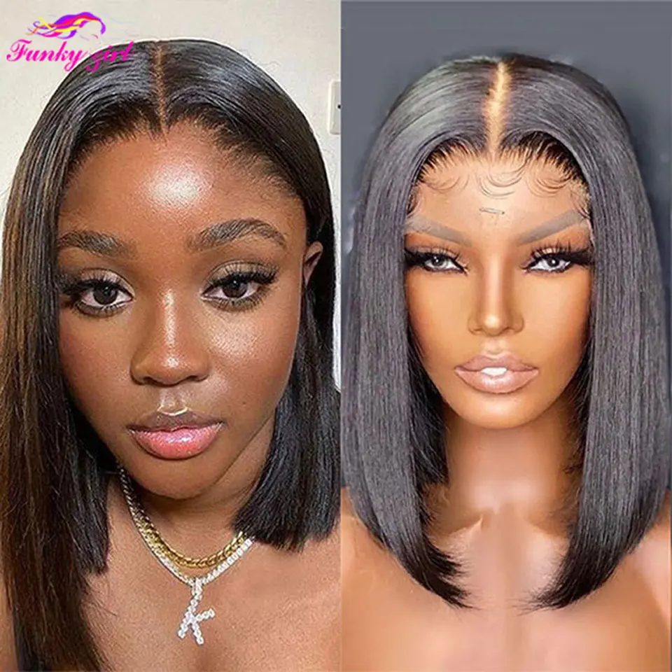 Парик прямой Боб, парики из человеческих волос на сетке спереди, бразильские волосы 13x4, прозрачный короткий парик Боб, предварительно выщипанные натуральные парики на сетке