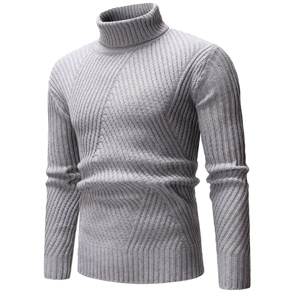 Простой вязаный свитер в рубчик с длинным рукавом, водолазка, однотонный мужской трикотаж, Облегающая водолазка, вязаный свитер