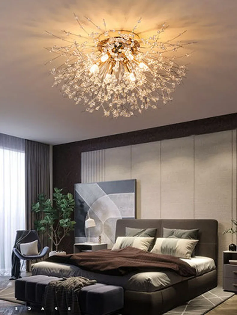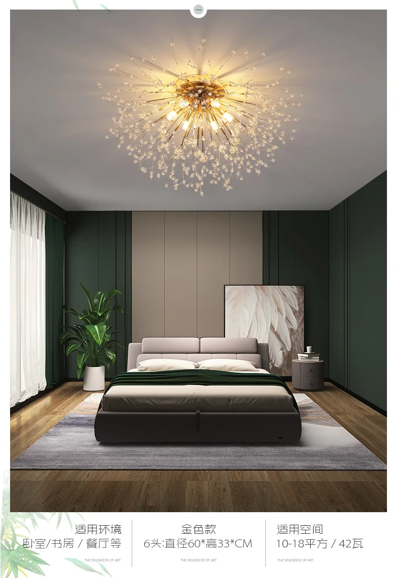Потолочная лампа в спальню с одуванчиком, креативные светильники с кристаллами для гостиной, теплое и романтичное освещение в эстетическом стиле