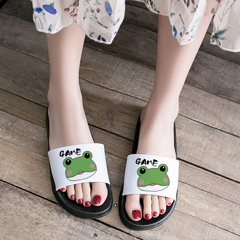 Шлепанцы женские нескользящие, мультяшный рисунок лягушки, домашние сандалии, Нескользящие тапочки, сланцы, летняя обувь