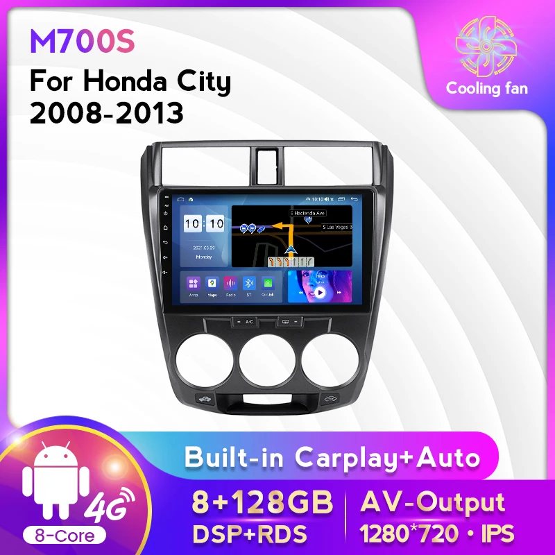 Автомагнитола на Android 11, мультимедийный видеоплеер 2 Din с GPS, RDS, DVD, CarPlay, 8 ГБ + 128 ГБ для Honda City 2008, 2009, 2010 - 2014