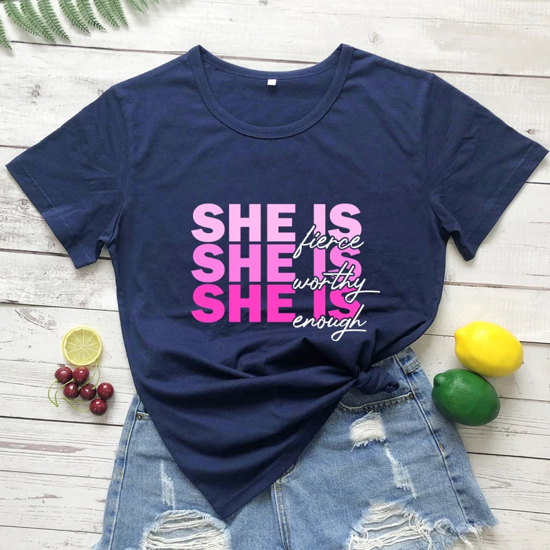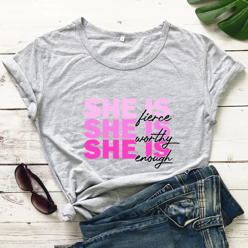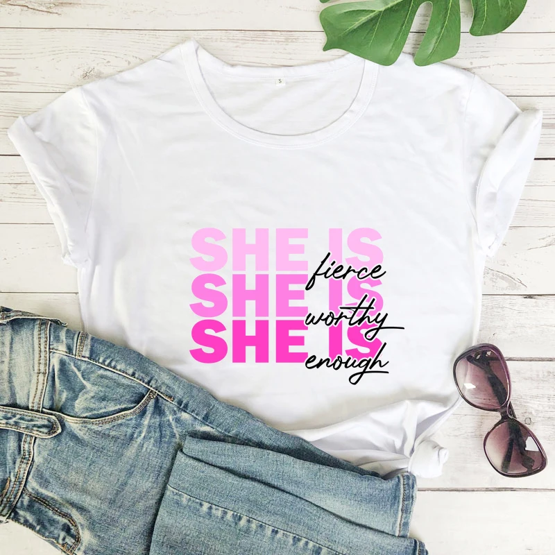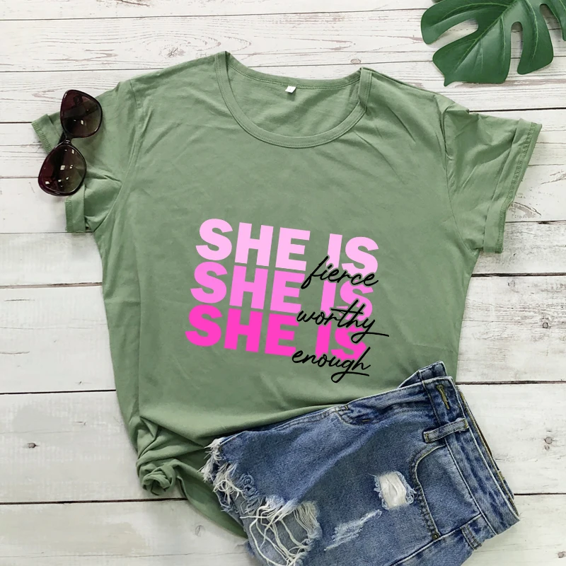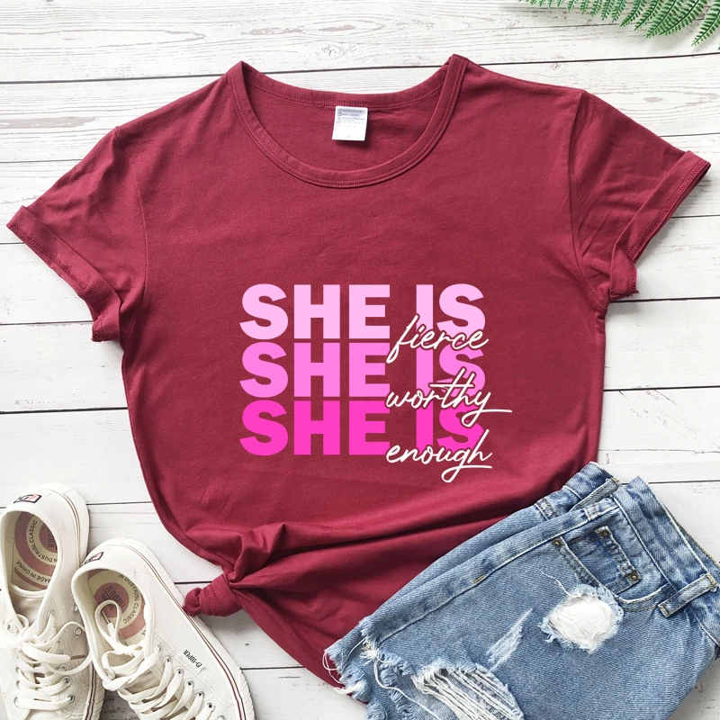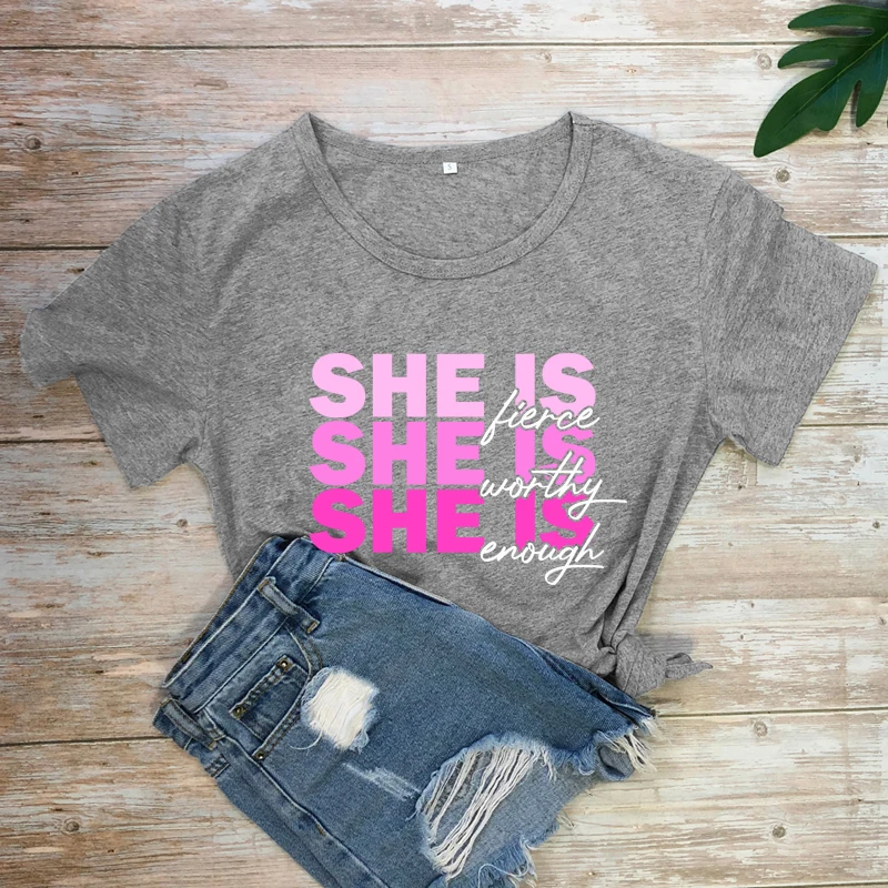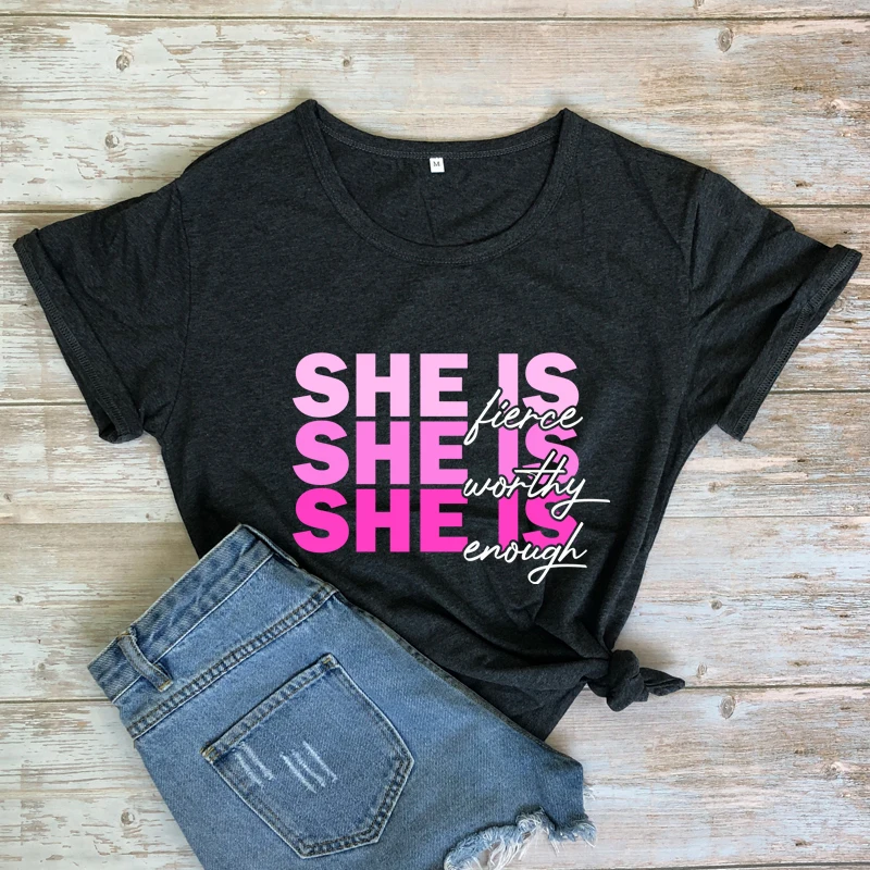 Женская Винтажная Футболка с принтом и надписью She Is Fierce