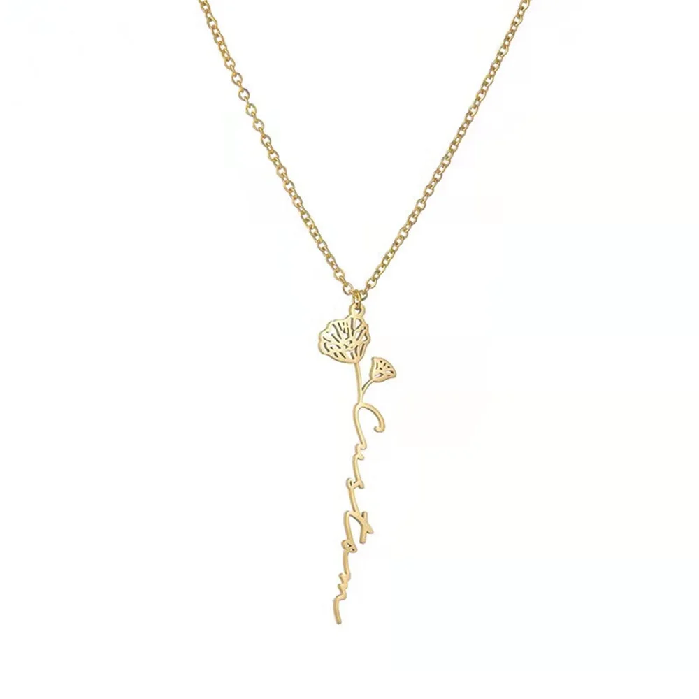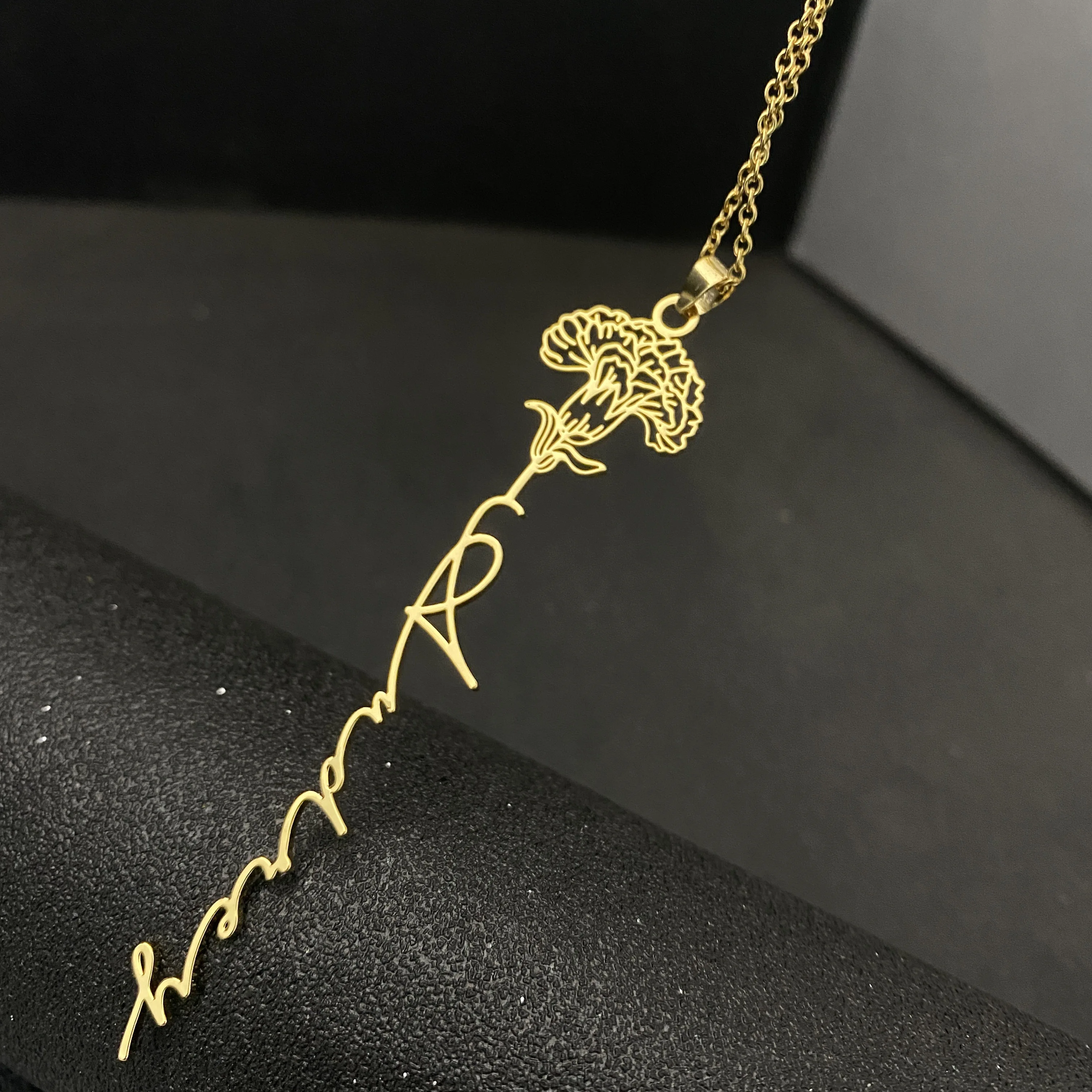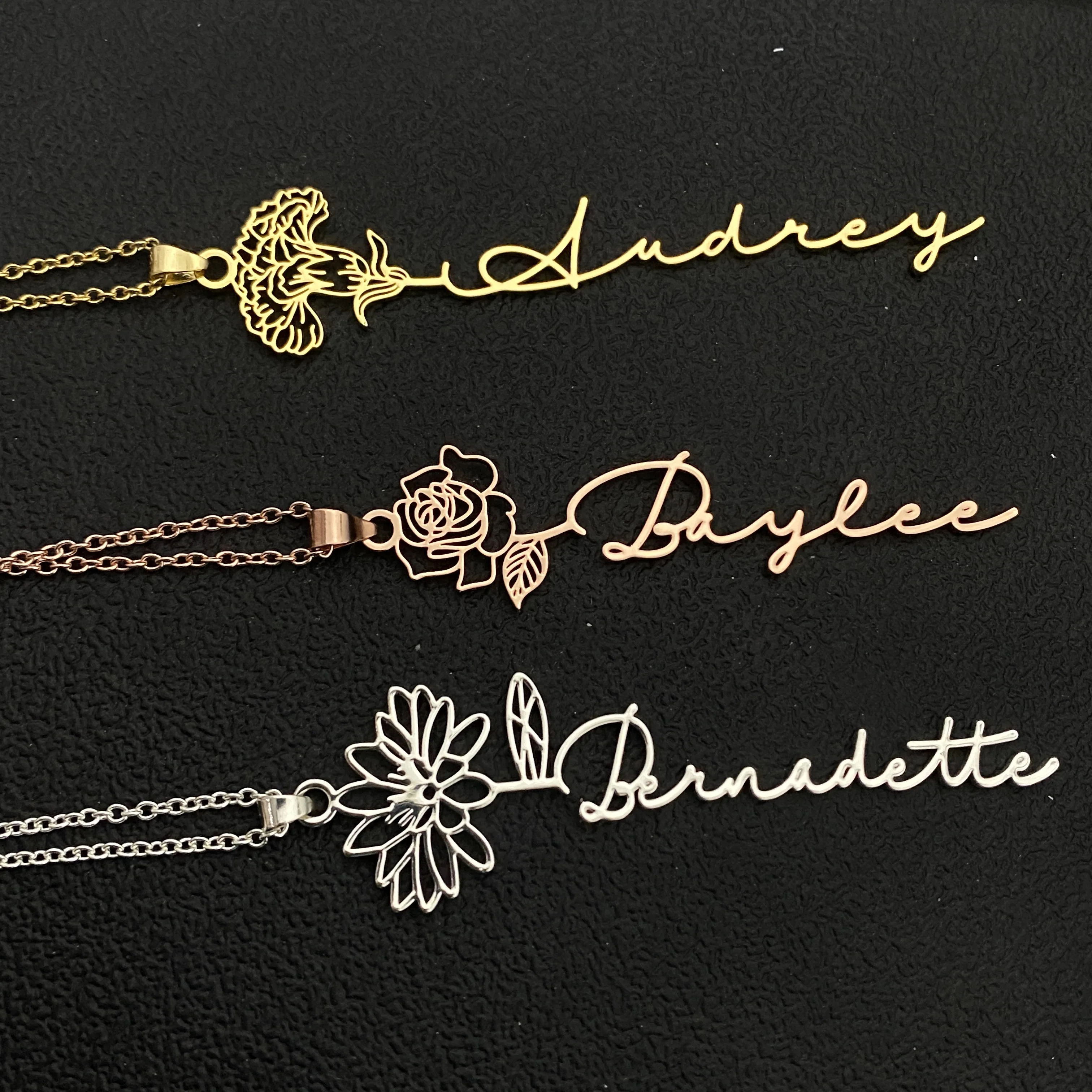 Название продукта:На заказ, ожерелье с именем цветка, кулон из нержавеющей стали, персонализированная именная табличка, чокер для женщин, подарки на день рождения, бесплатная доставка