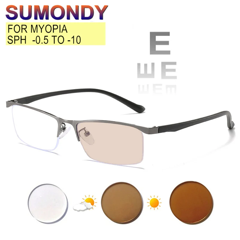 SUMONDY Фотохромная или защита от синего света Рецептурные очки для близоруких-от 0,5 до-10, очки с диоптриями при миопии для женщин и мужчин, астигматизм настраиваемый UF125
