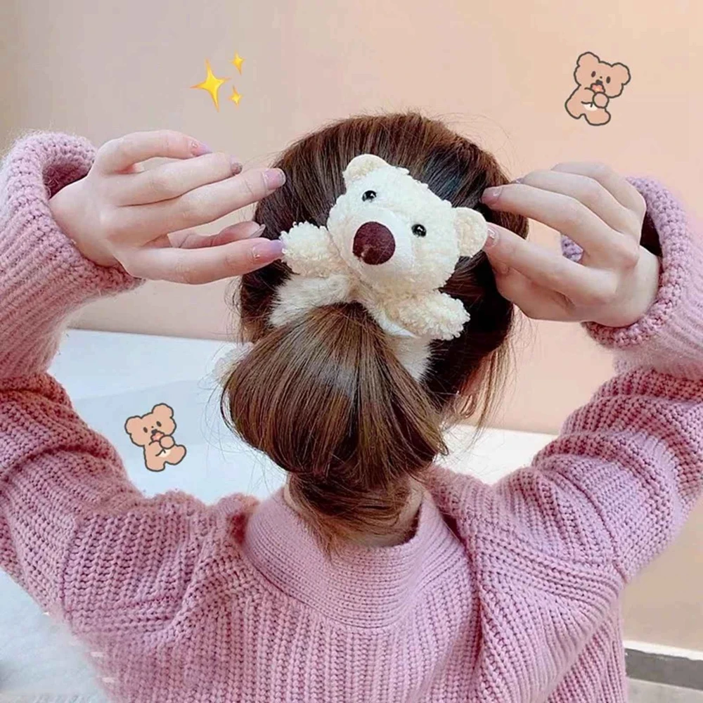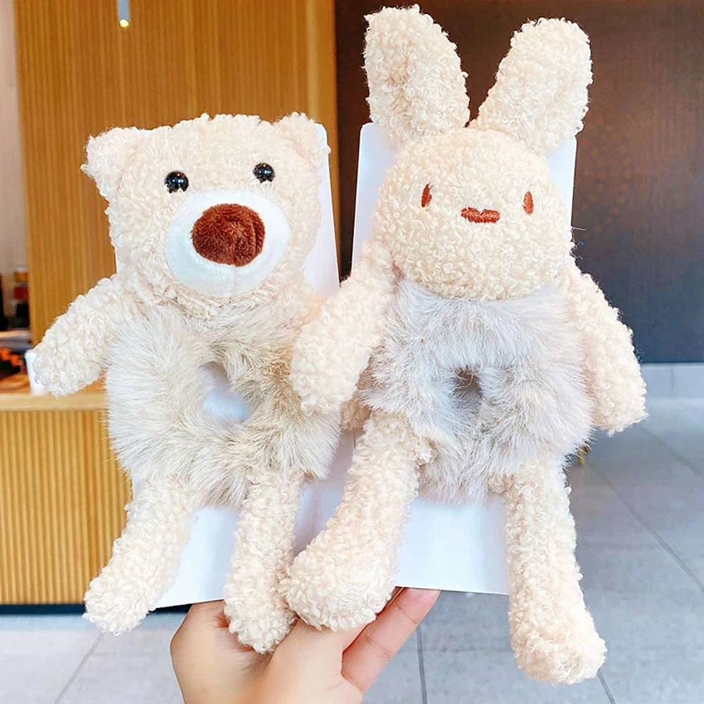 Резинка для волос плюшевая женская, милая заколка для конского хвоста с медведем, Кроликом, декоративная эластичная повязка на голову, модные аксессуары для волос