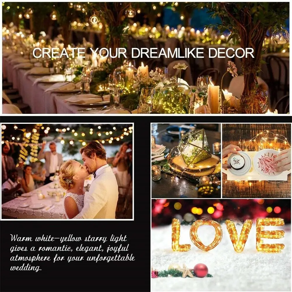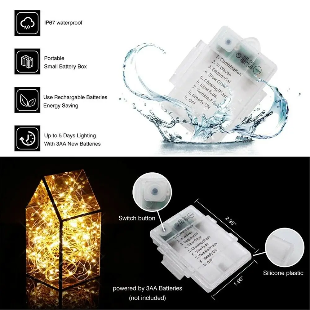 8 режимов 1-10 м водонепроницаемый Светодиодный светильник с серебряной проволокой на батарейках с дистанционным управлением напольный светильник Феи Свадебный Рождественский Декор