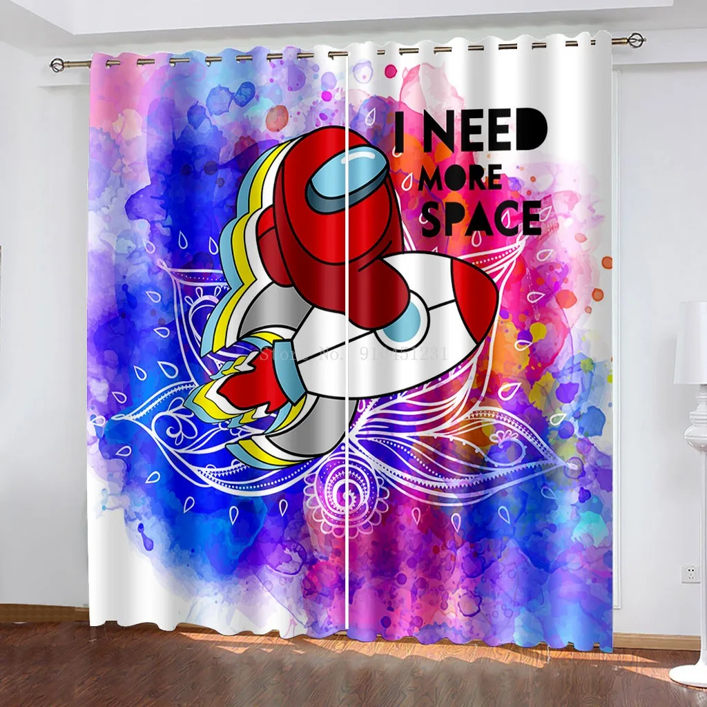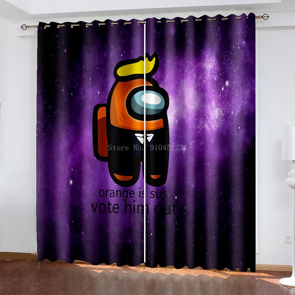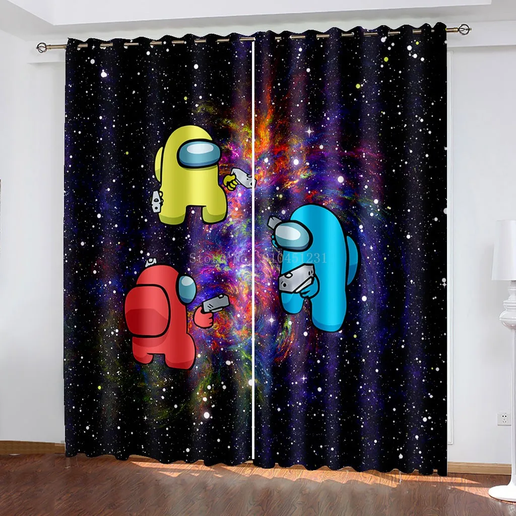 2 панели занавески Спящий режим, повторная игра среди нас, Мультяшные термальные изолированные светонепроницаемые затемняющие окна, драпировка