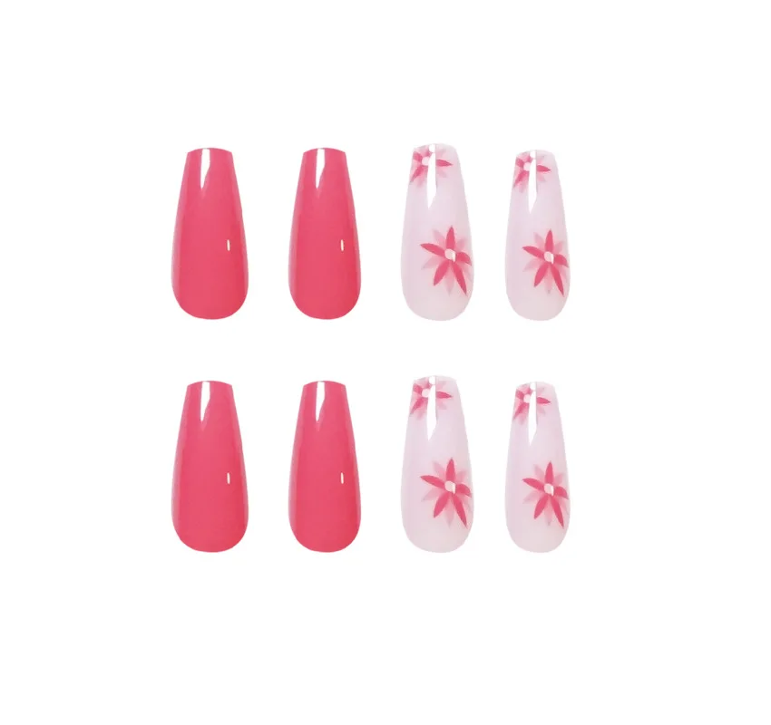 Розовые накладные ногти с маленьким цветочным дизайном, съемные длинные гробы, французские накладные ногти балерины, накладные ногти с полным покрытием, накладные ногти