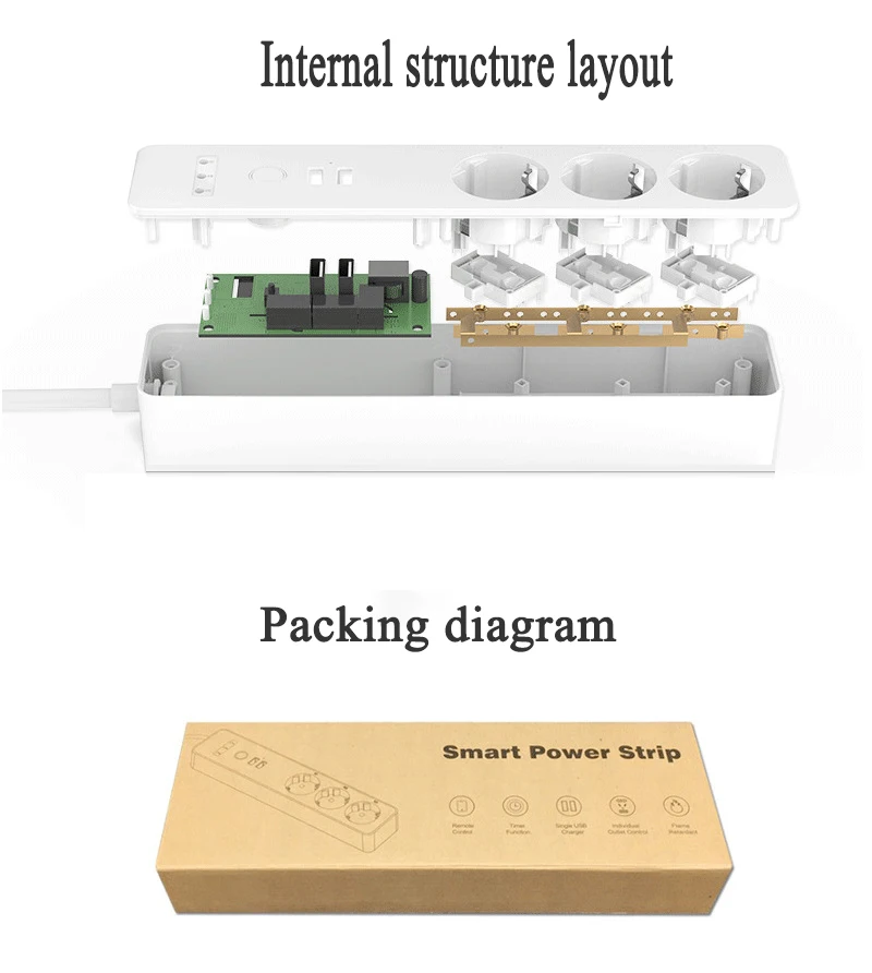 【APP remote control】 Tuya или smart life APP можно использовать для удаленного управления блоком питания вкл и ВЫКЛ. Вы можете видеть и контролировать открытое или закрытое состояние полосы питания из приложения, когда вы находитесь вдали.