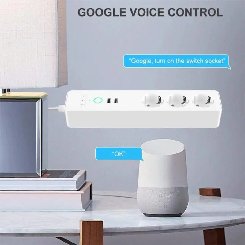 Умная Wifi защитная полоса питания с несколькими гнездами 3 розетки европейского стандарта с дистанционным управлением с Alexa Google Assistant