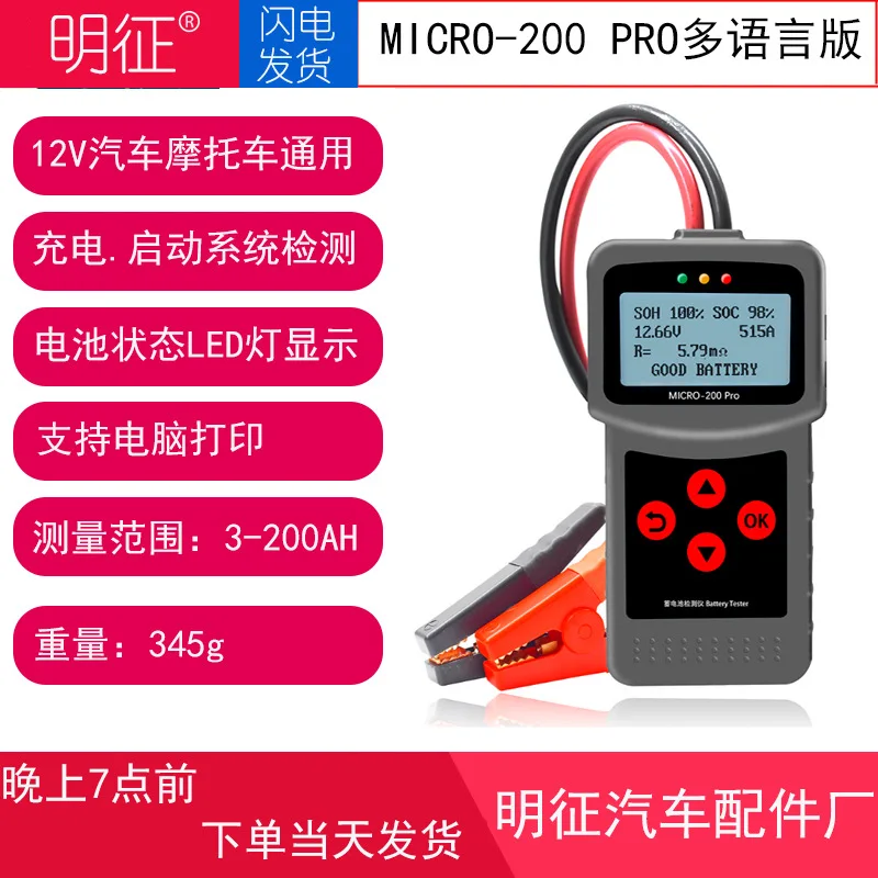 Общие для детей возрастом от 12V автомобильный аккумулятор 12V АКБ для мотоциклов 12V & 24V тест системы батареи Проверка системы зарядки Испытание системы запуска Дисплей индикатора состояния батареи Подключите usb-кабель для передачи данных к компьютеру для печати результатов тестирования 3-220AH Обычные батареи, AGM батареи, edb батареи, гелевые батареи и т. Д. Тест Технология проводимости, удобное, быстрое и точное тестированиеMICRO-200 Pro
