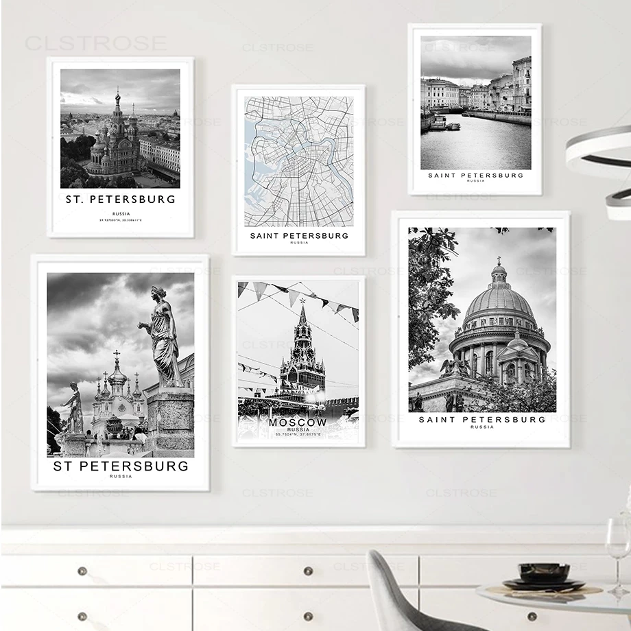 Настенная картина черно-белая, Санкт-Петербург, Москва, Россия, постеры и принты на холсте в скандинавском стиле, настенные картины для декора гостиной