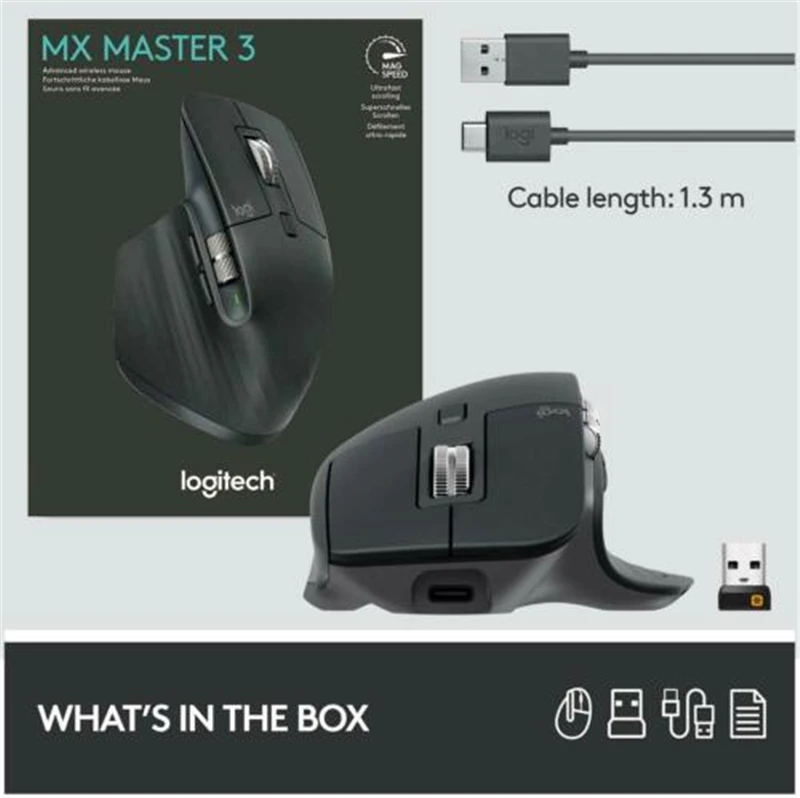 Мышь Logitech MX Master 3, беспроводная, Bluetooth, 2,4 ГГц, с прие...