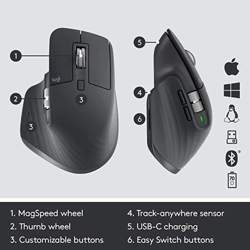 Logitech MX Master 3 Мышь в любом месте 2S Беспроводной Bluetooth М...