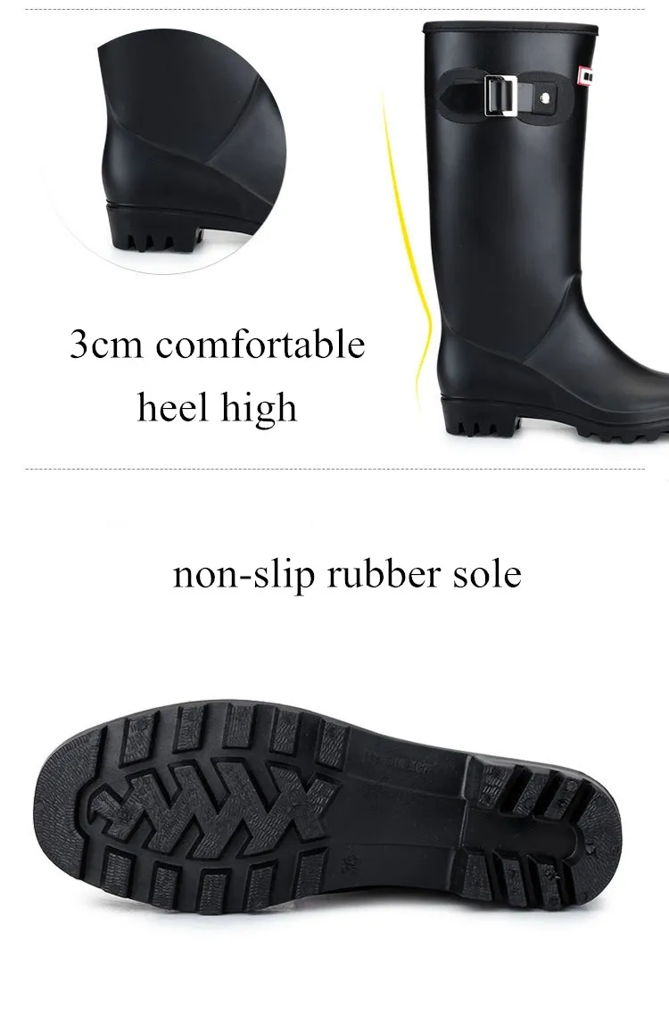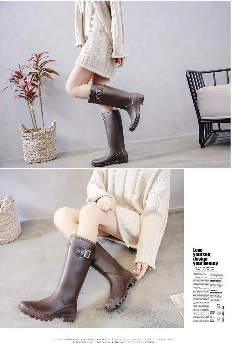 Модные Нескользящие дождевые сапоги, женские сапоги до колена, водонепроницаемые длинные резиновые сапоги, женские высокие галоши, дождевая обувь
