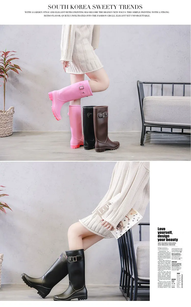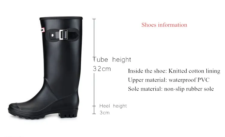 Сапоги женские резиновые до колена, ПВХ, водостойкие, с пряжкой