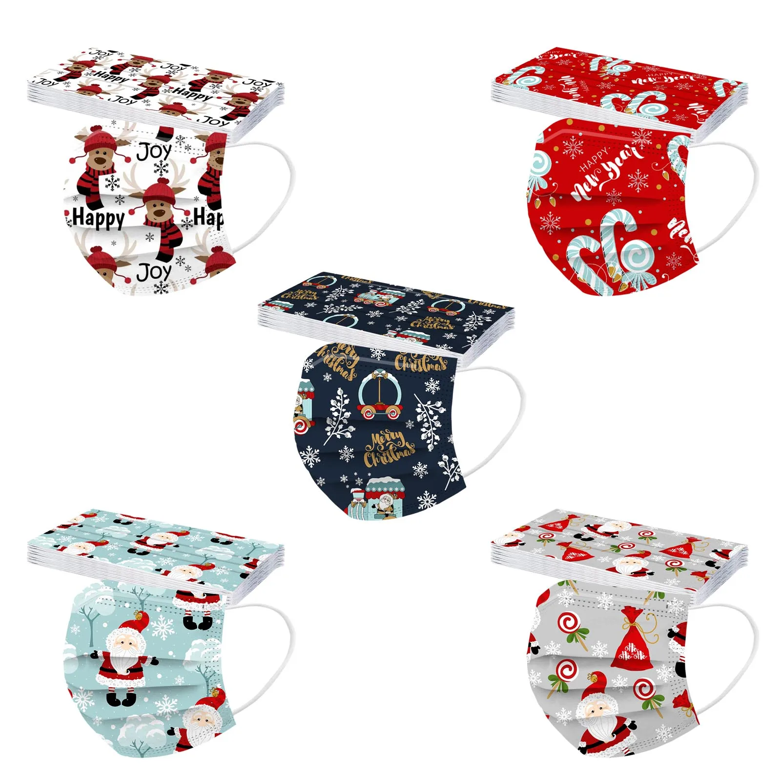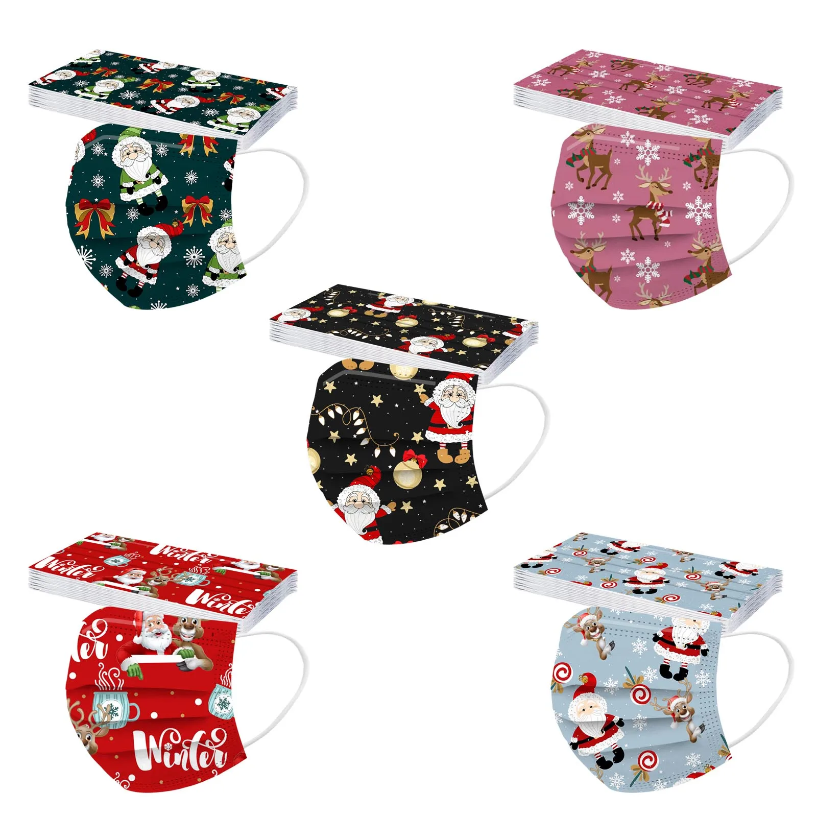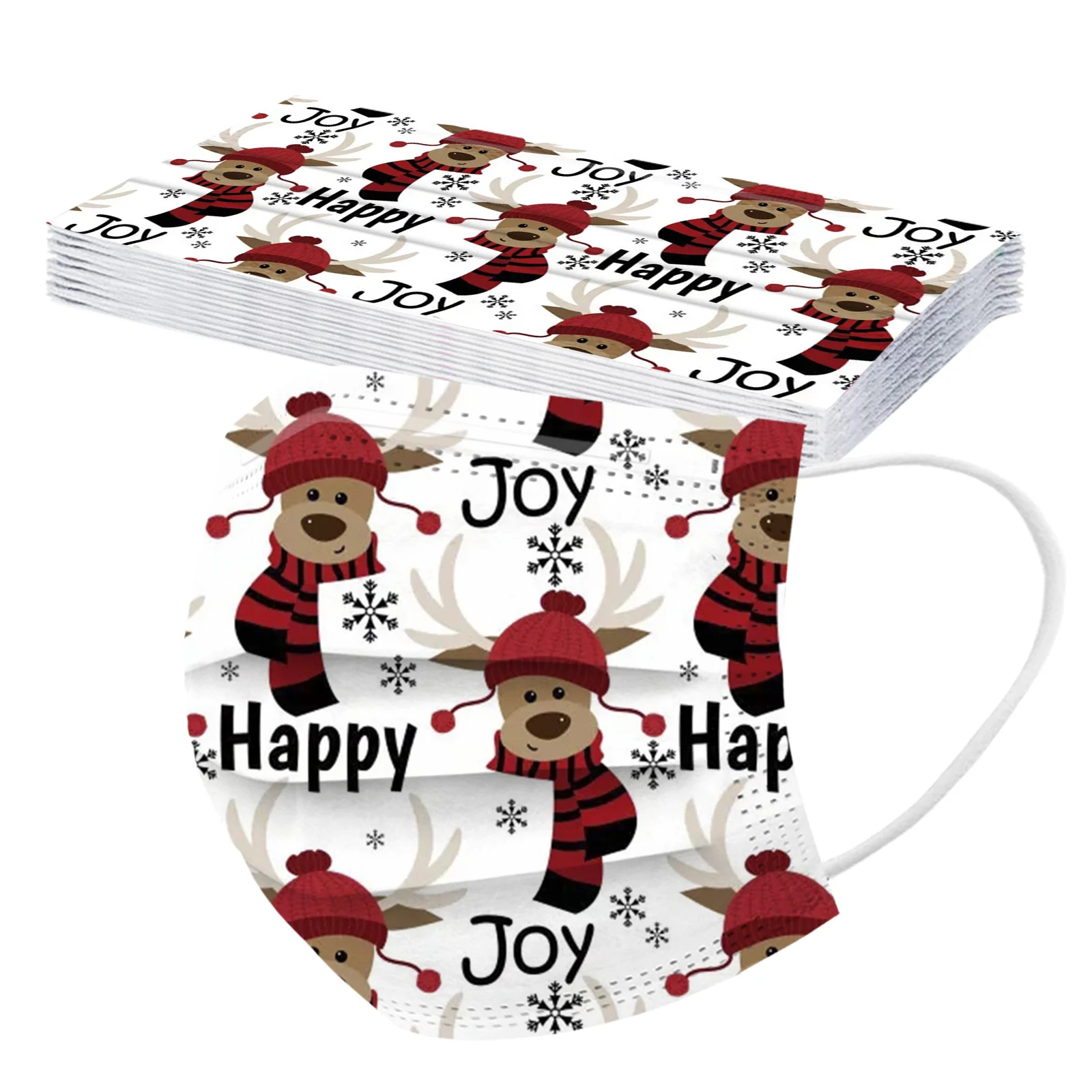 50 шт. Рождественская медицинская маска для взрослых, 3-слойная цве...