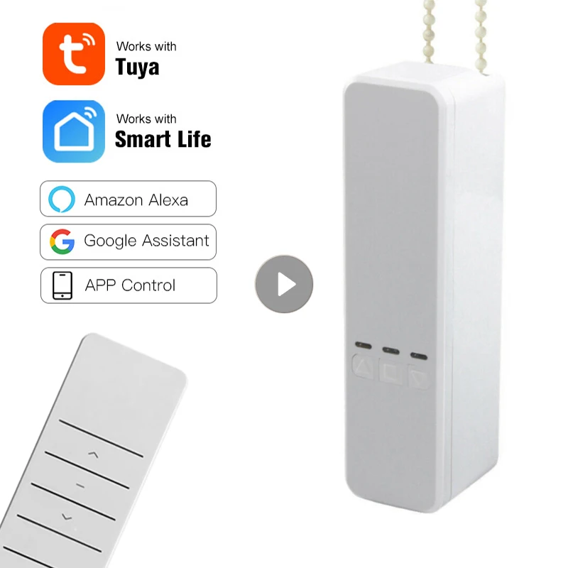 Ручные жалюзи, управляемые цепочкой, с нашим контроллером, открываются и закрываются автоматически. С приложением или пультом дистанционного управления.