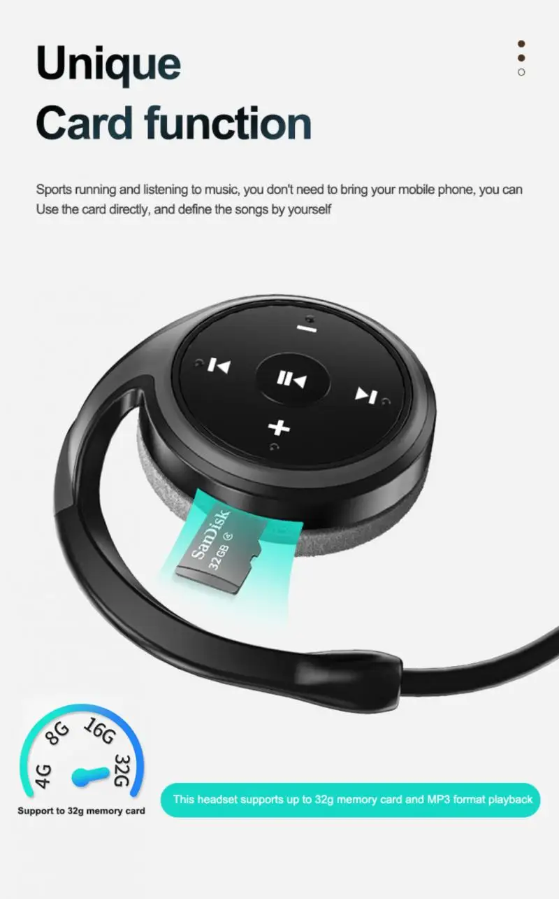 Не только беспроводные наушники, но и спортивный MP3-плеер. Наслаждайтесь собственным музыкальным списком, не снимая свои телефоны. Расширяемая TF карта до 32 Гб