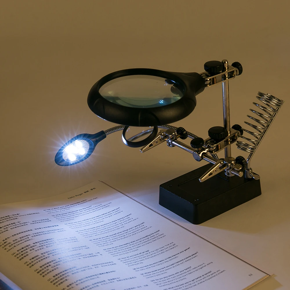 Увеличительное стекло для сварки со светодиодный светильник кой, линза 3,5x-12X, лупа с вспомогательным зажимом, Настольная лупа, третья рука, ремонт пайки