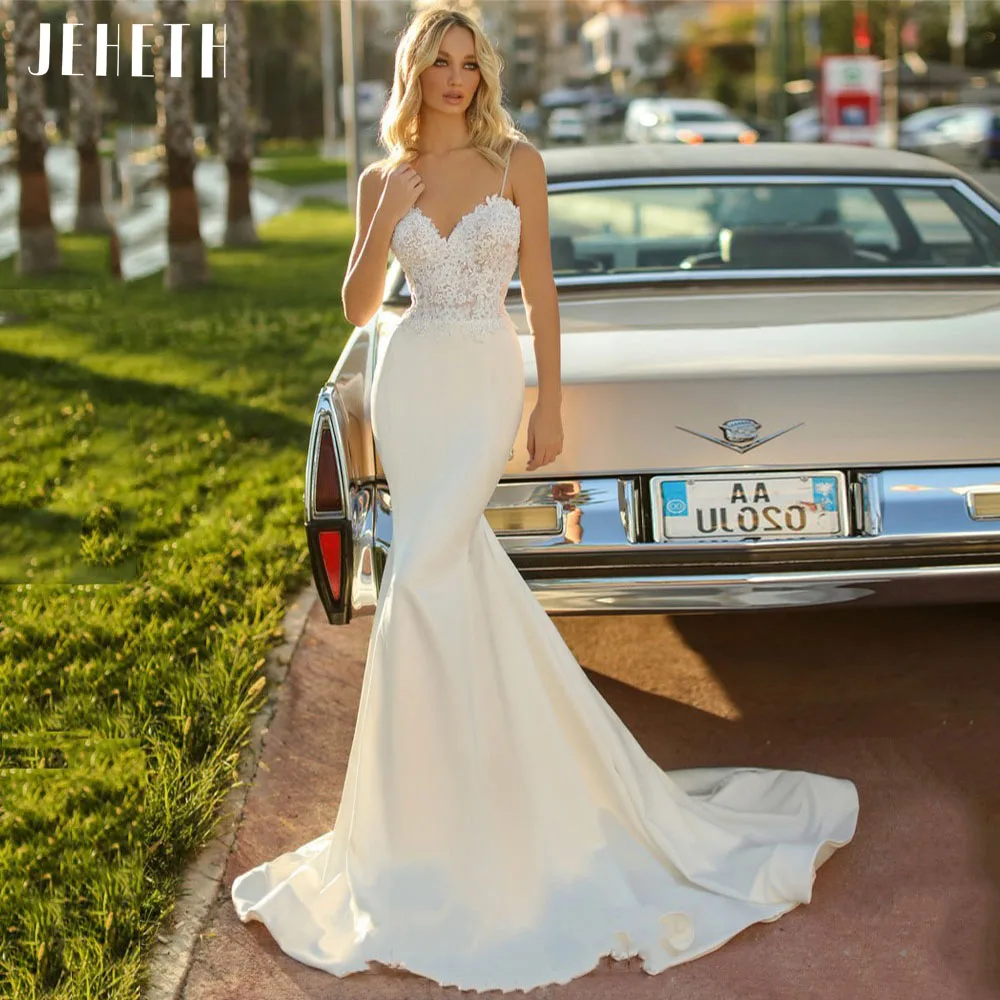 Женское блестящее свадебное платье JEHETH, сексуальное простое богемное свадебное платье на бретелях-спагетти