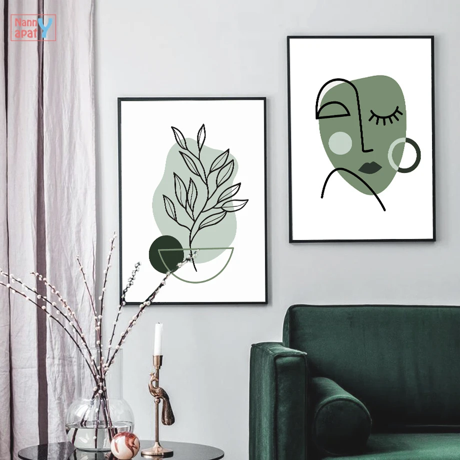 Модный плакат, простые картины с человеческим лицом и листьями, нас...