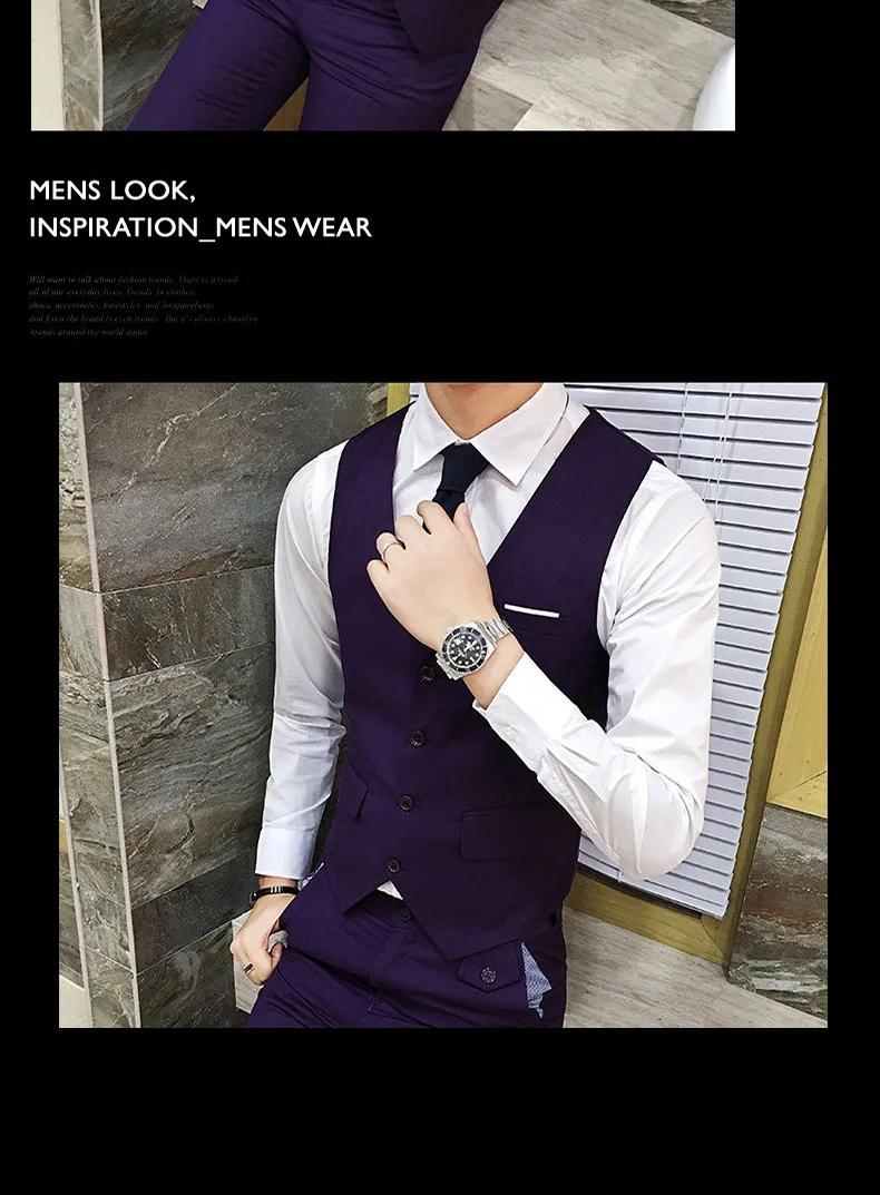 Мужской однотонный деловой костюм, пиджак, жилет, брюки, Свадебный ...
