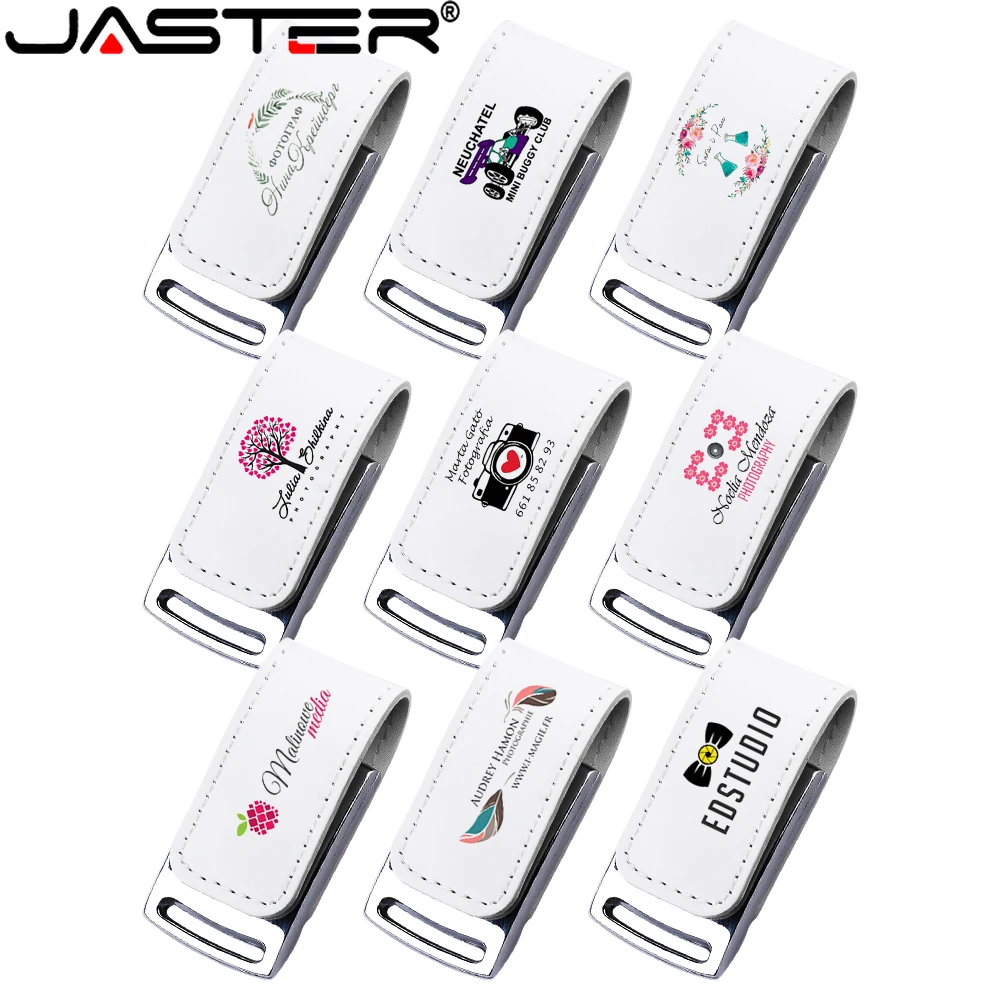 USB флеш-накопитель JASTER, 10 шт./партия, бесплатная доставка, Пользовательский логотип, ручка-накопитель, кожаная карта памяти, белая коробка, флешка, 128 ГБ, 64 ГБ, 32 ГБ, 16 ГБ, 8 ГБ, 4 Гб, цветная печать, Внешняя память