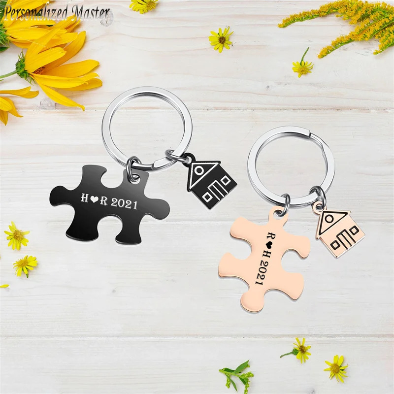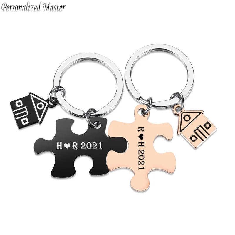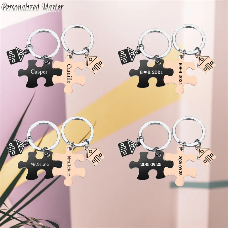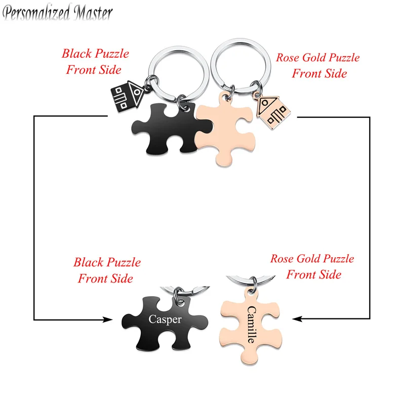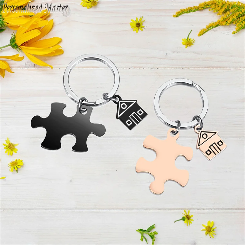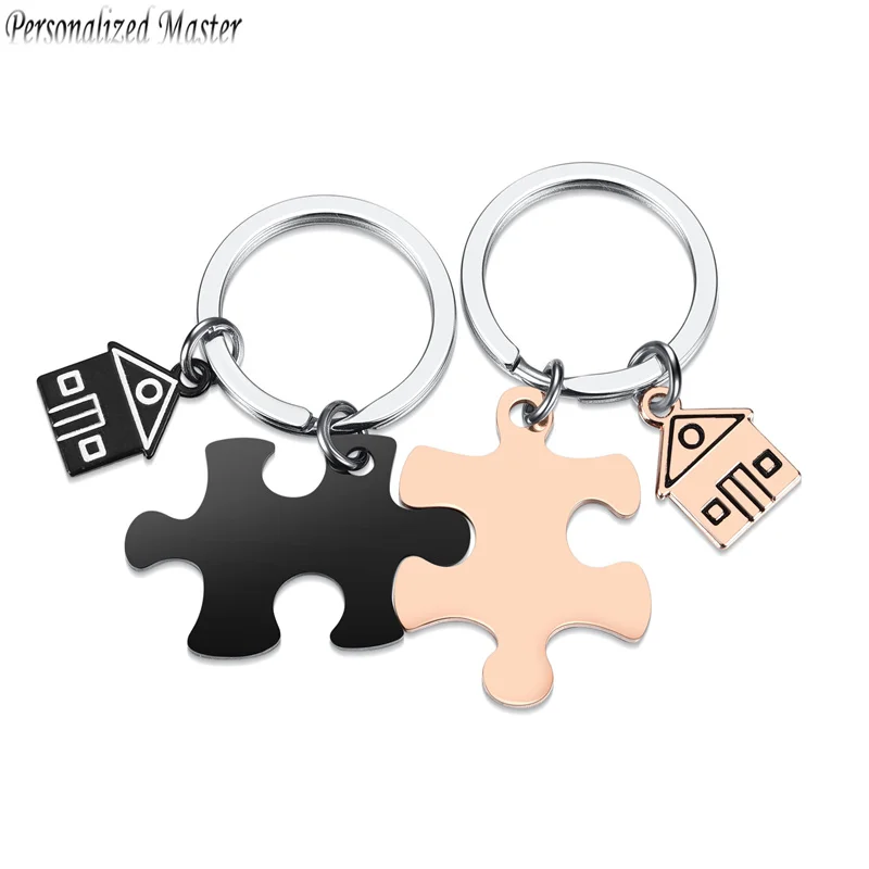 ♥Любовные брелки с дизайном паззлов: Дизайн пазла символизирует то, что вы всегда подключены. Подходит для пары. Этот изящный набор для ключей для пары выразит вашу любовь к нему или ей, он всегда будет помнить этот момент.