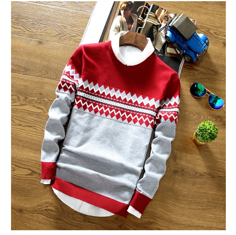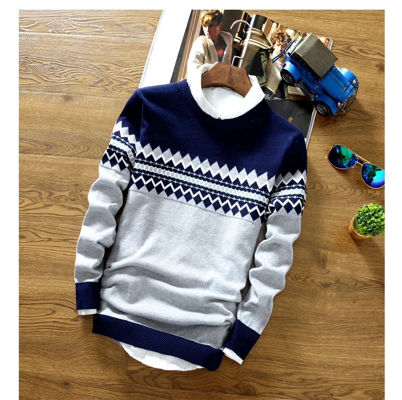 Мужской свитер, осень 2020, мужские пуловеры с длинным рукавом, верхняя одежда, модный свитер в клетку с круглым вырезом, облегающая трикотажная одежда, свитер, Топ