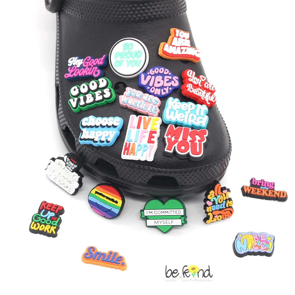 1 шт. мотивационные английские фразы, подвески для обуви, пряжки, ПВХ Croc JIBZ, сандалии, садовые сабо, аксессуары, украшение, рождественский подарок